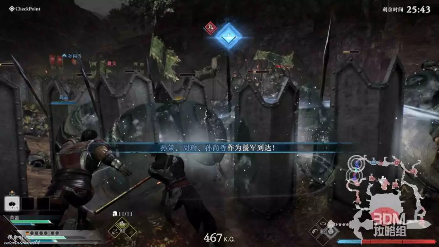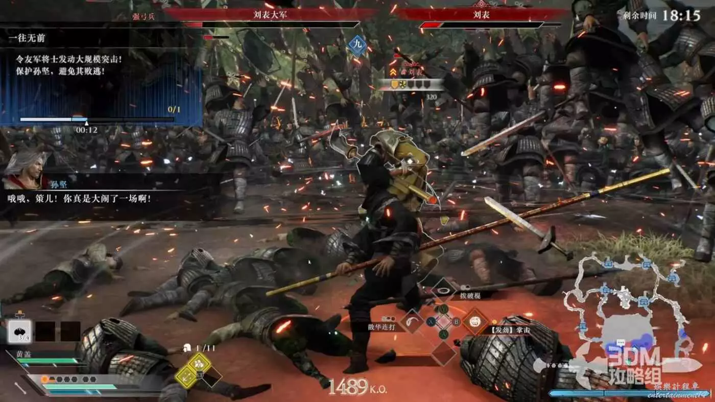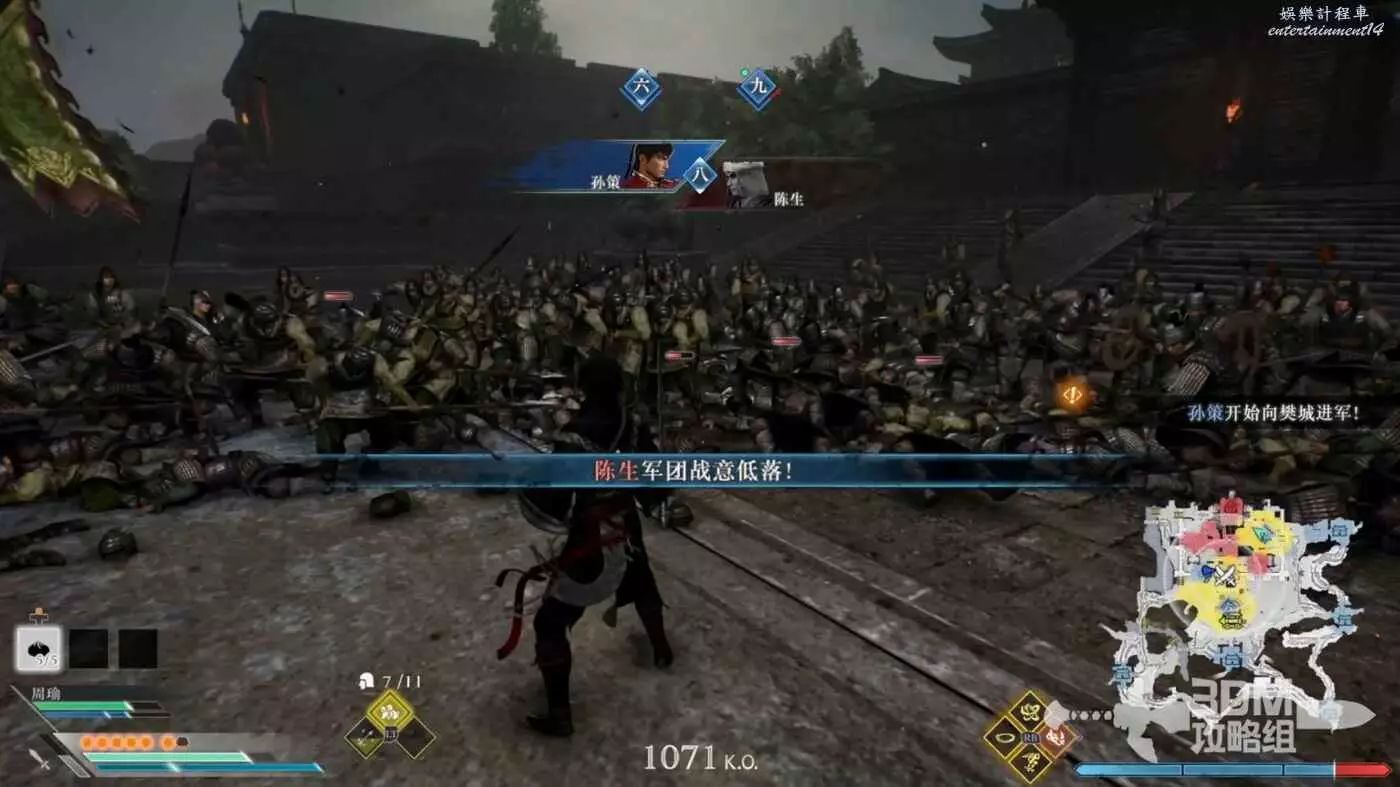 要在敵方大戰術的時候注意孫堅的血量,由於敵軍眾多,孫堅血量下降的很快。