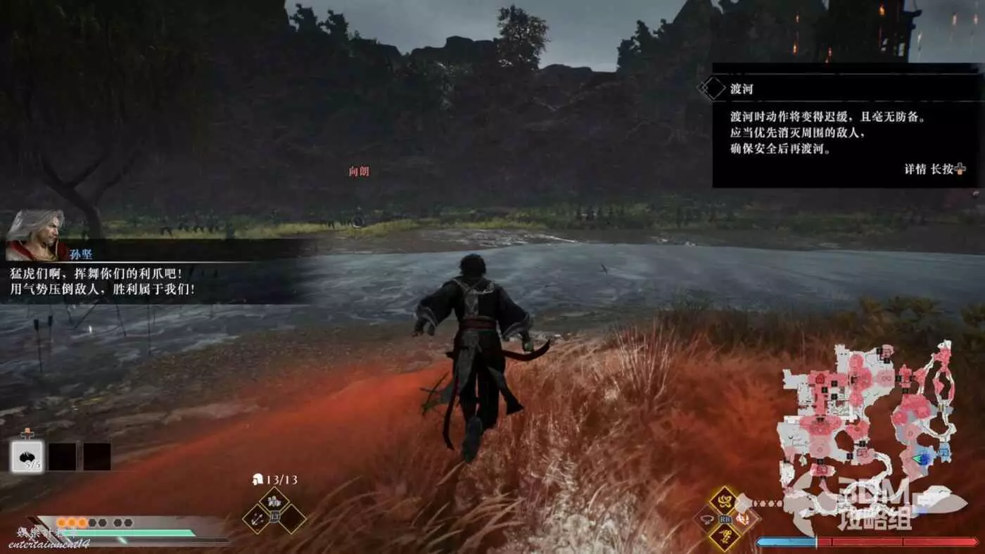 剛開始會有在渡河的情況,渡河時動作將變得遲緩,且毫無防備。應當優先消滅周圍的敵人,確保安全後再渡河。