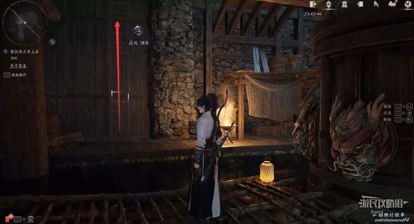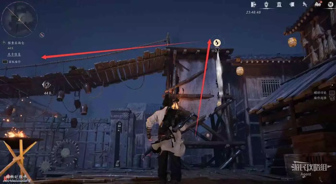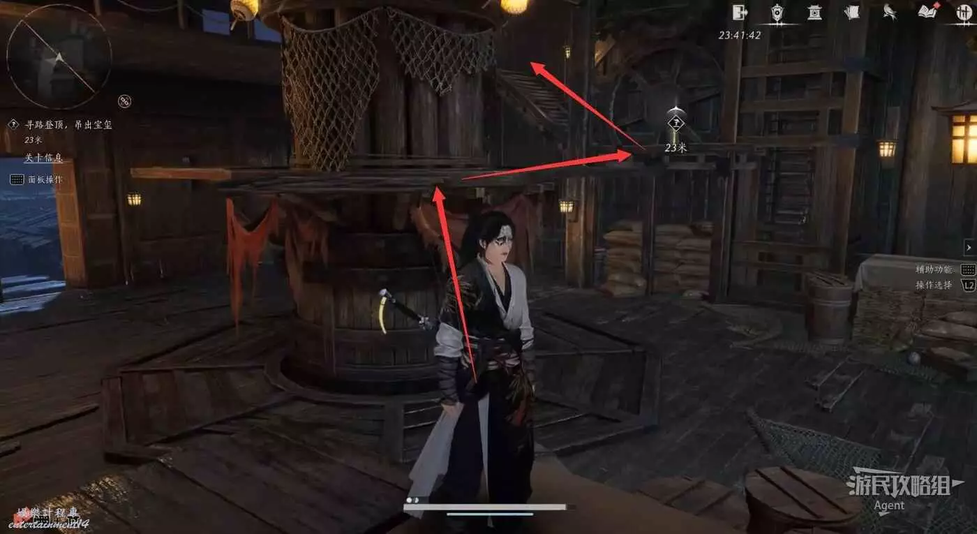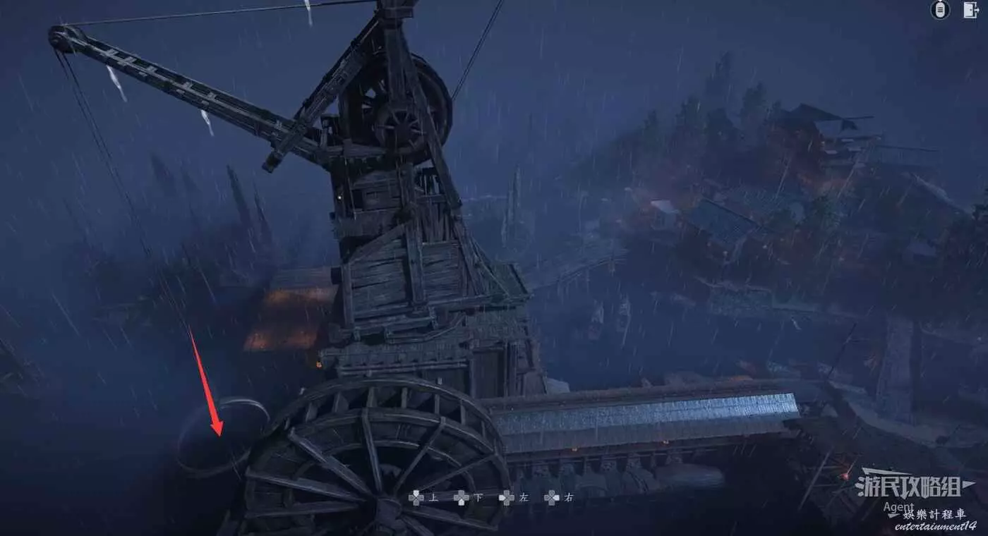 觸發劇情後回到木筏,啟動機關後,爬梯子往上。