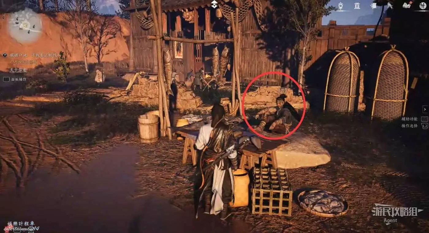 先和其他商販對話,然後和鹹魚攤主二馬對話,他就是線人。發現他其實就是送你來開封的那個船夫,而且趙大帶你進樊樓時,船夫也是他。