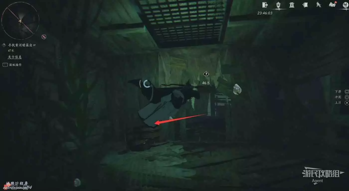 和二馬對話後,潛水到頭發現沒路了,注意左邊有個洞可以往下游,抵達目的地。