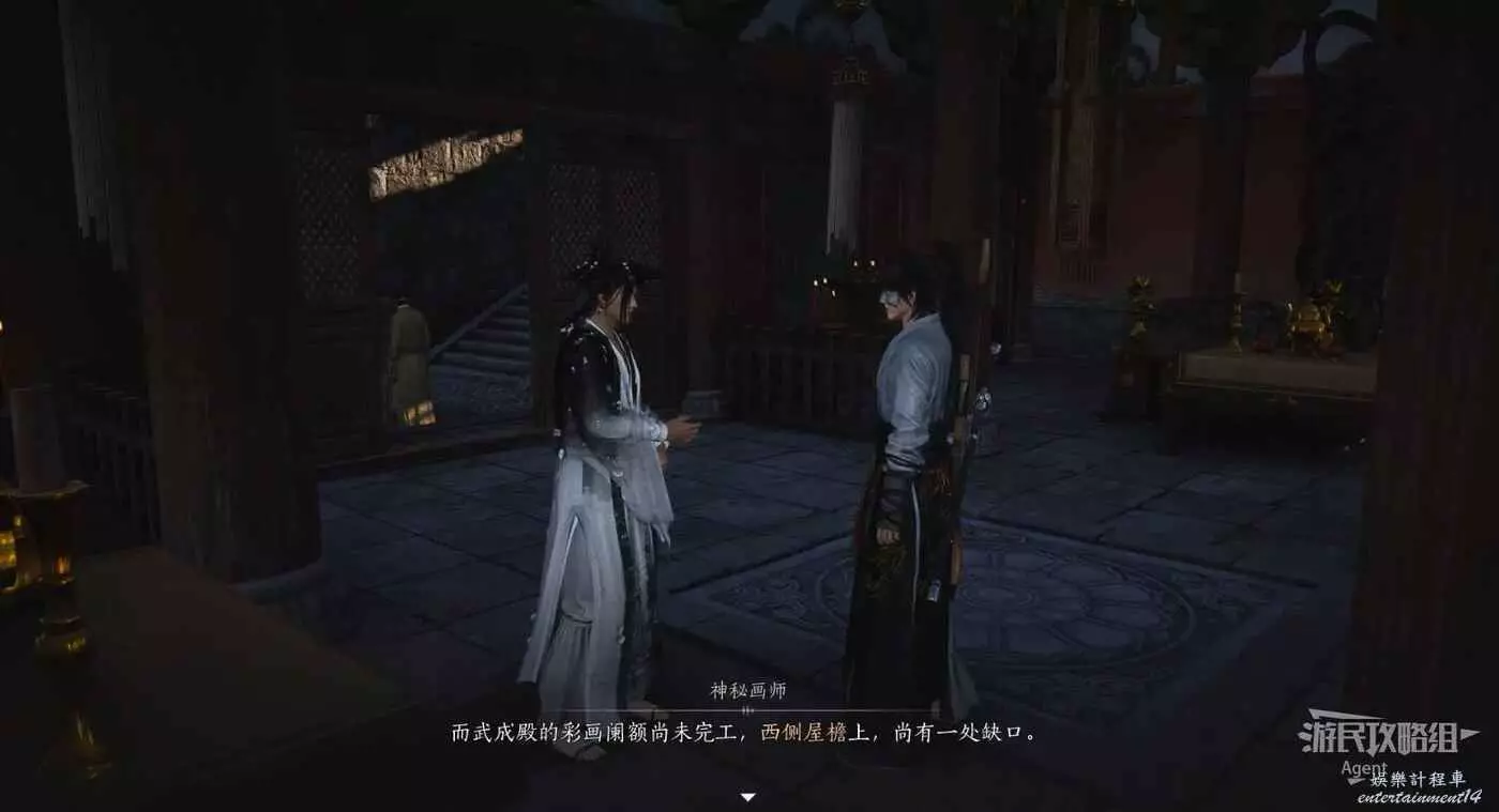 從密道一路往下,出來發現來到了鏡潭的亭子處,把神秘的兵書交給神秘畫師。神秘畫師的對話暗示,他應該就是趙匡胤派來的。