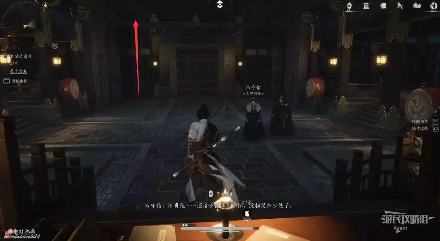 見到石守信和他的長子石貞(石保興)後,開寶箱得到神秘的兵書。然後先不著急走,看後面有個梯子。