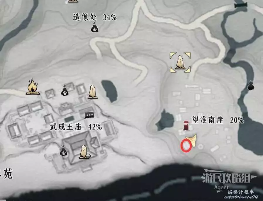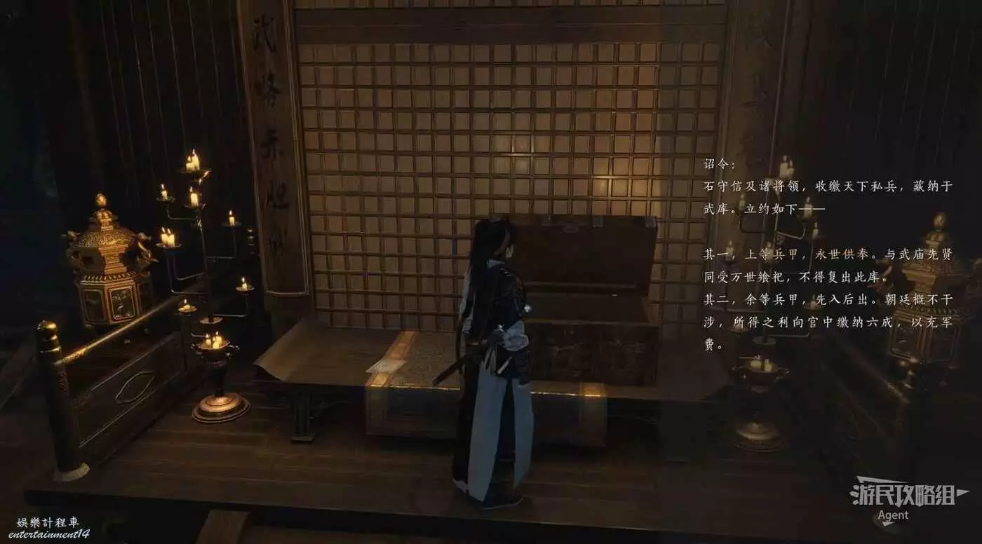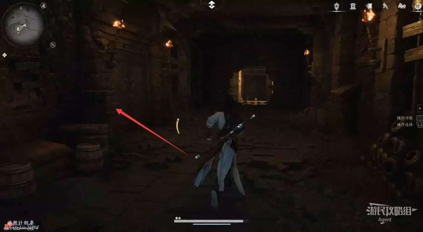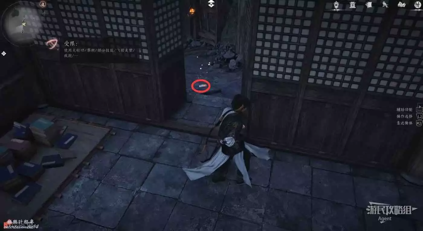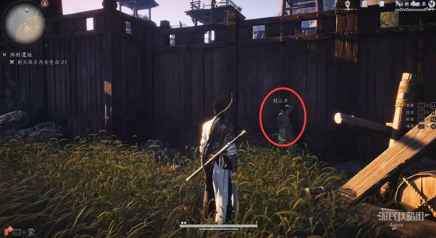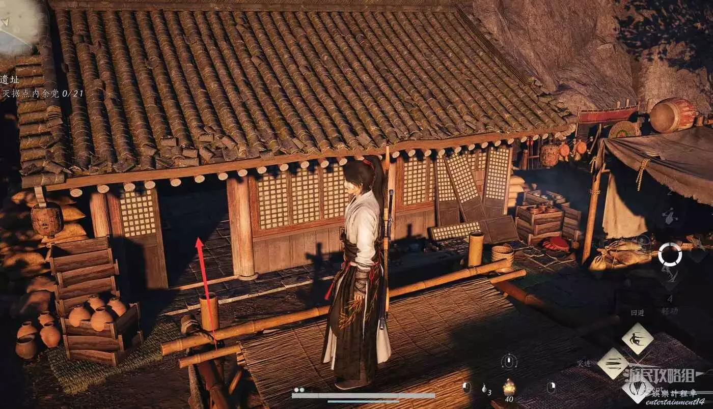 清完據點所有敵人並擊敗BOSS後,到下圖位置的房子裡,有個暗門。房子門口有運送武器裝備的陰兵的腳印,只進不出。