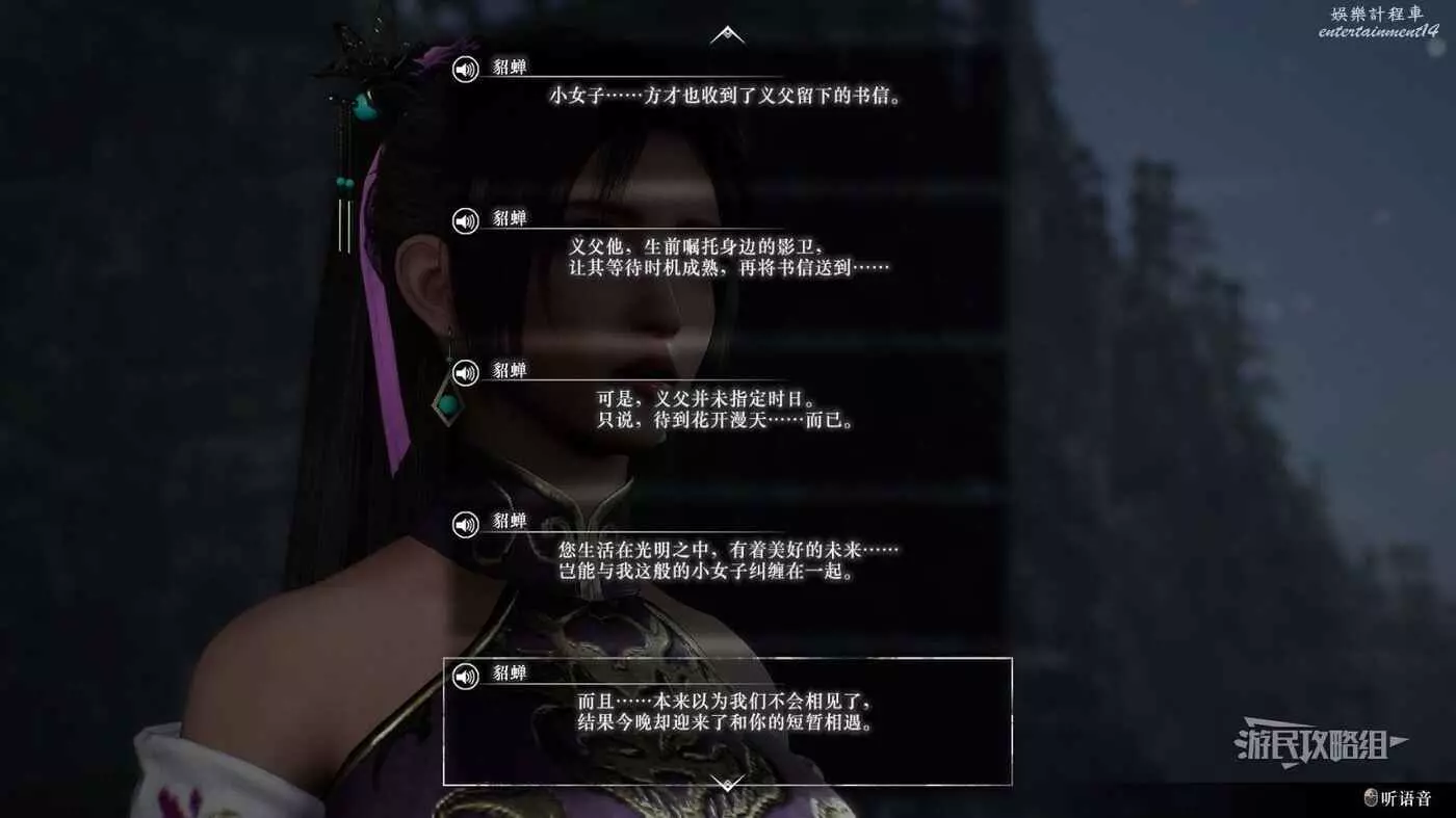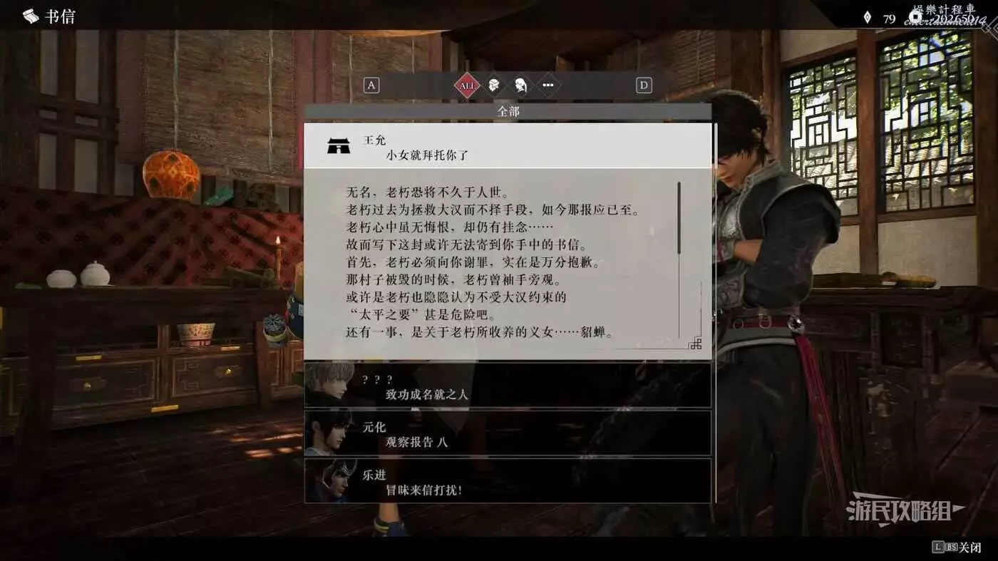 貂蟬最後一級情誼需要冀州太平值達到3級(可能需要領取完所有冀州的太平值獎勵,可能需要主線劇情推進至後期,尚未明確),進入旅店閱讀王允的書信,之後即可觸發貂蟬最後的劇情,貂蟬的位置如下圖所示。