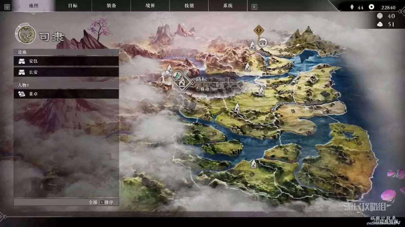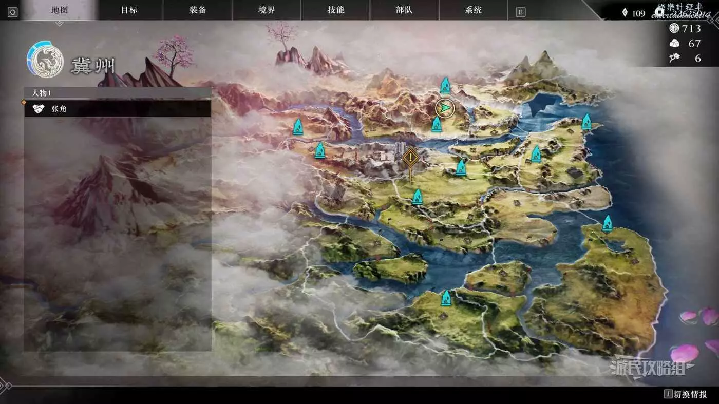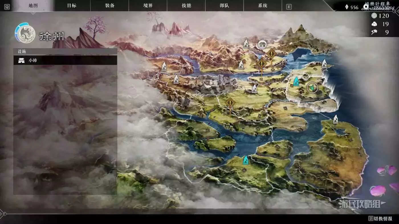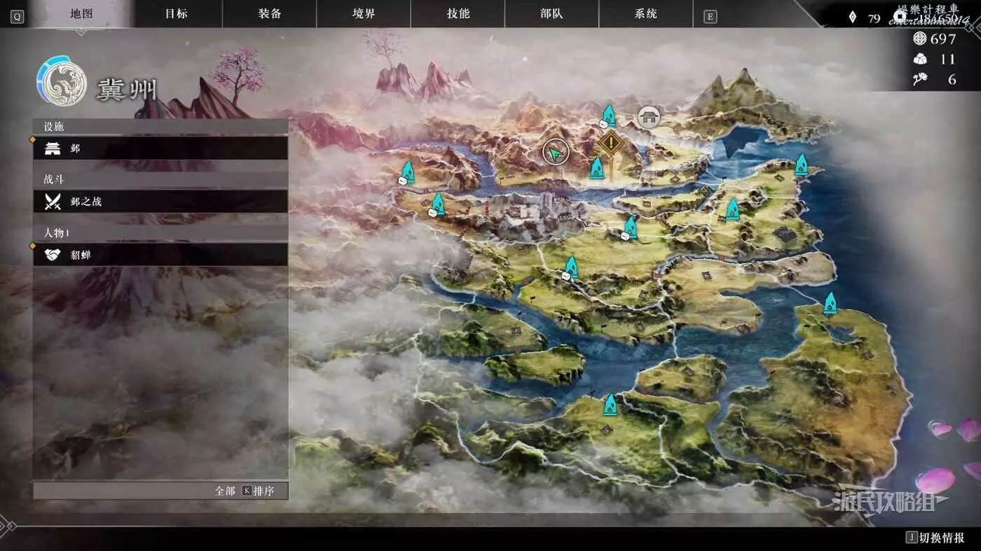 在大地圖介面,也可以通過右下角切換情報,來查看當前地圖上存在的可交流武將的具體位置。