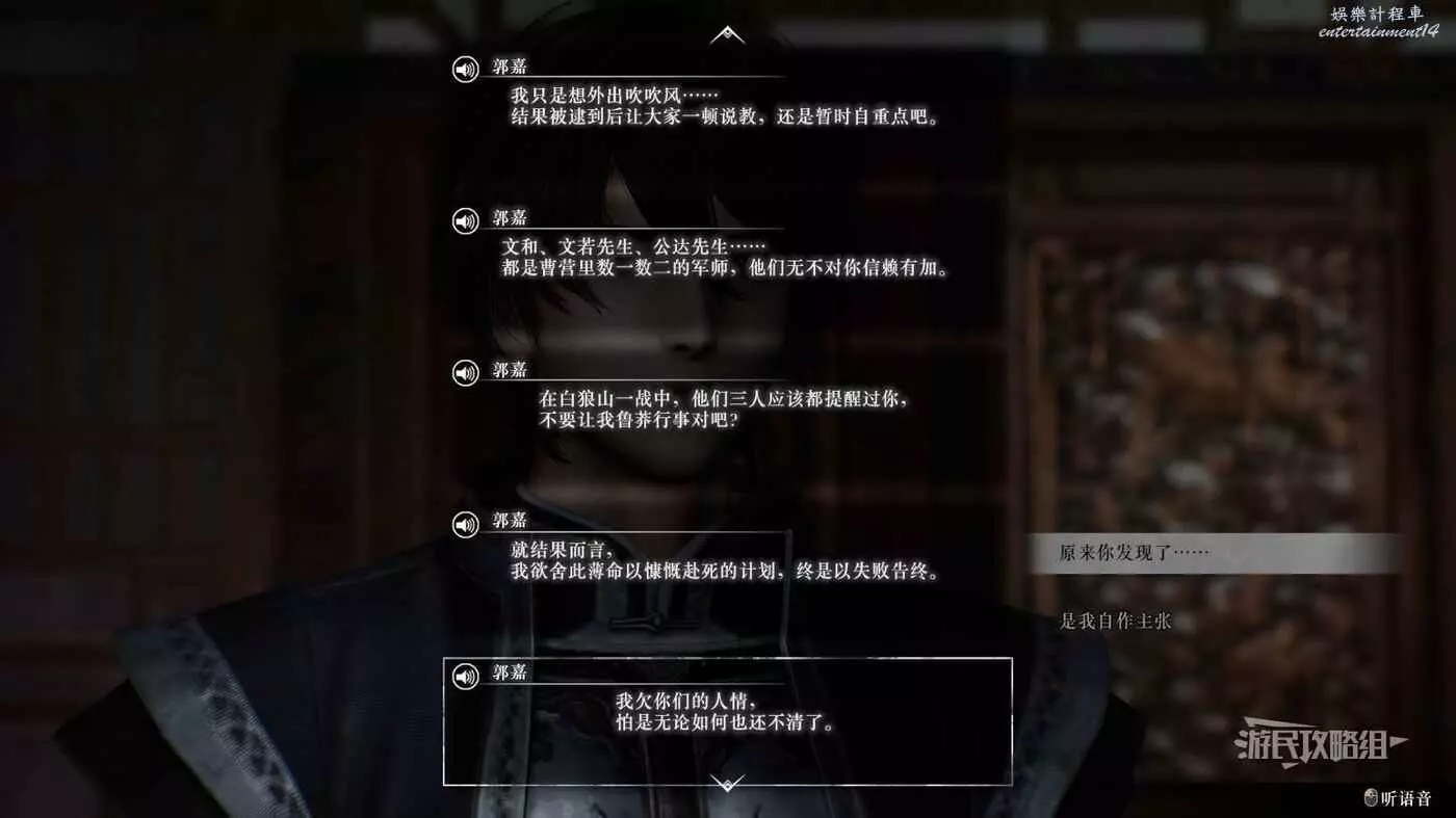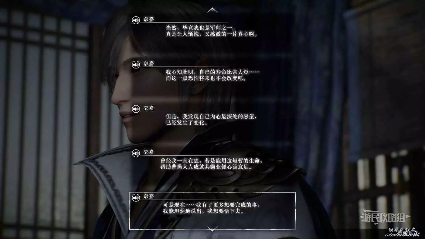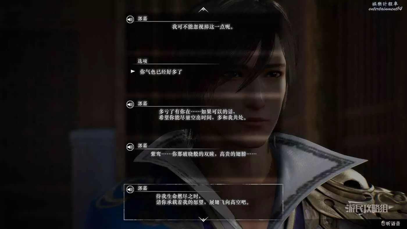 之後大部分事件都需要跟隨曹操線的主線推進提升情誼,解鎖鄴之戰後前往豫州許都解鎖事件,事件結束後對話追加修煉。最後需要在【白狼山之戰】中保證郭嘉存活,觸發曹軍的IF線,才能最終升滿情誼。