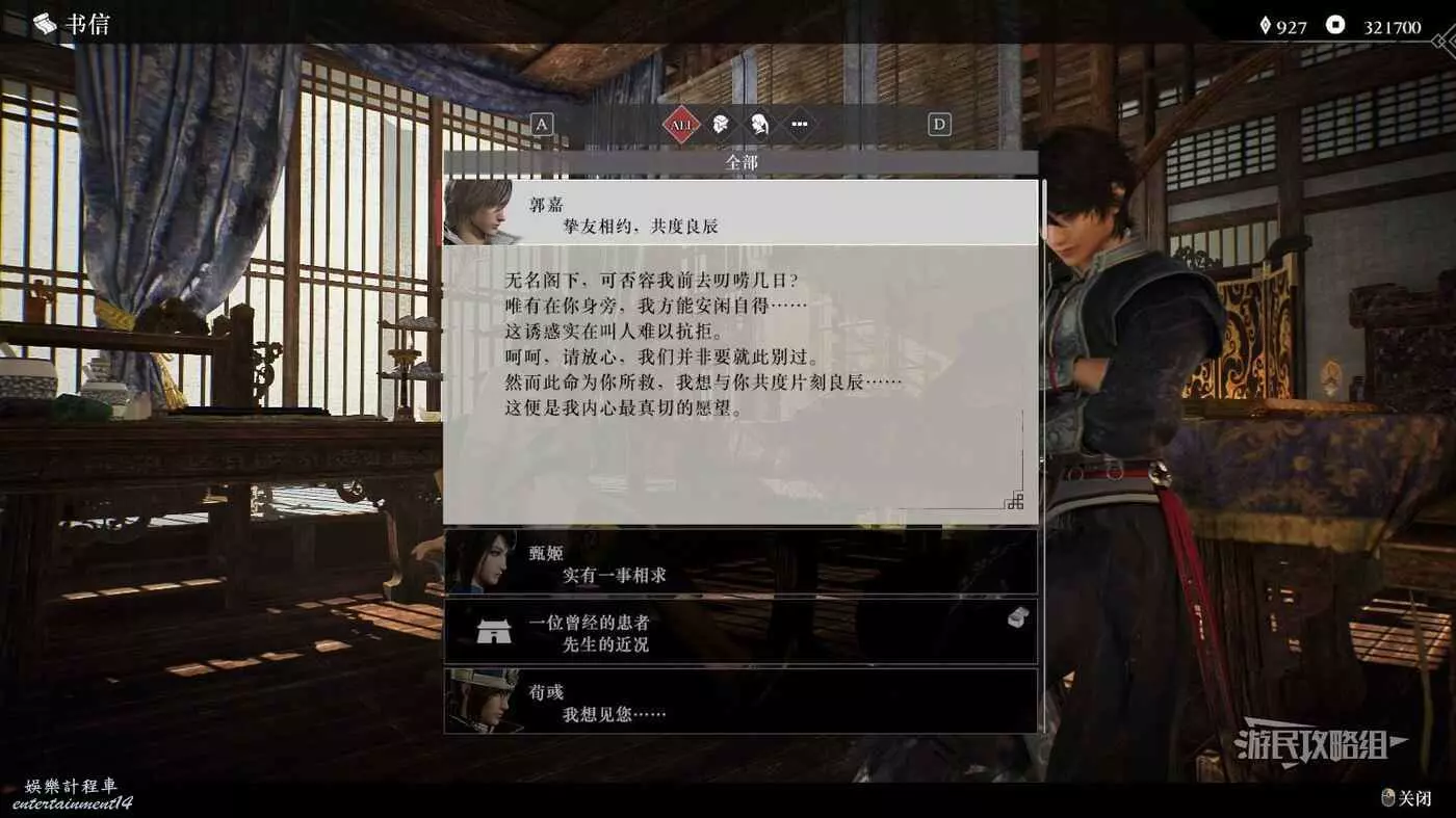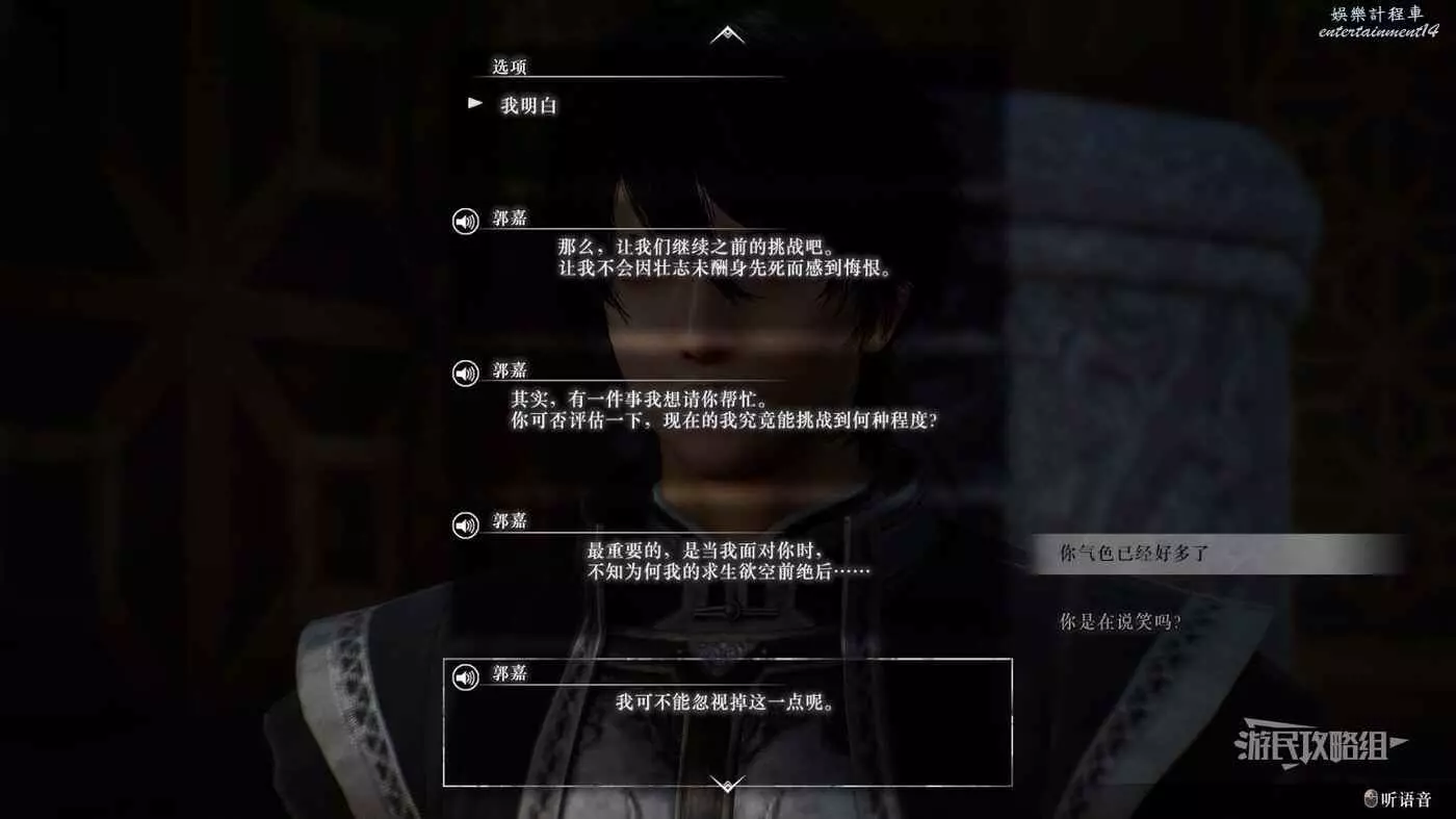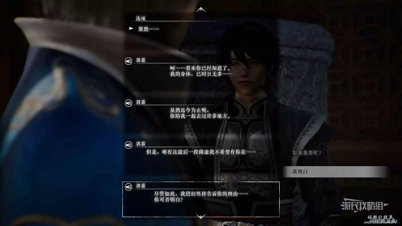 之後大部分事件都需要跟隨曹操線的主線推進提升情誼,解鎖鄴之戰後前往豫州許都解鎖事件,事件結束後對話追加修煉。最後需要在【白狼山之戰】中保證郭嘉存活,觸發曹軍的IF線,才能最終升滿情誼。