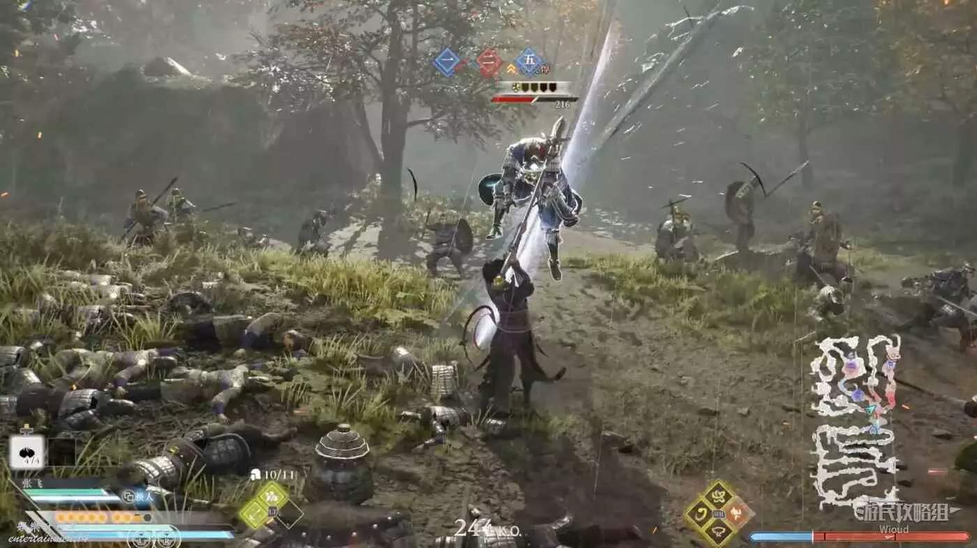 等待所有武將聚集在劉備旁邊後才會繼續移動,此時我們需要將下方出現的大量伏兵全部幹掉。