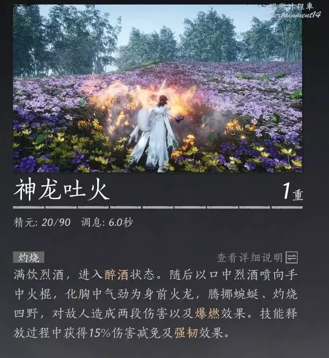 3 神龍吐火/太白醉月:釋放過程15%減傷,還送你強韌,除了紅光金光無法打斷你。神龍吐火4重時,會變成40%減傷,雖然我們也不需要這麼高。