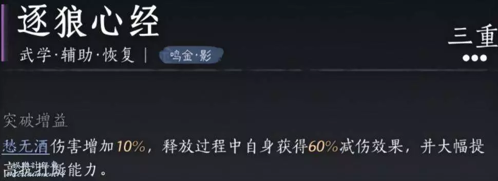 心法選擇:易水歌,磐石訣,怒斬馬,困獸(後期換征人歸)。很多人看不上怒斬馬,實測我3重怒斬馬都能做到66精元打完1輪吐火+2輪太白醉月,非常低調實用,說它不行的都是看看介紹想當然。