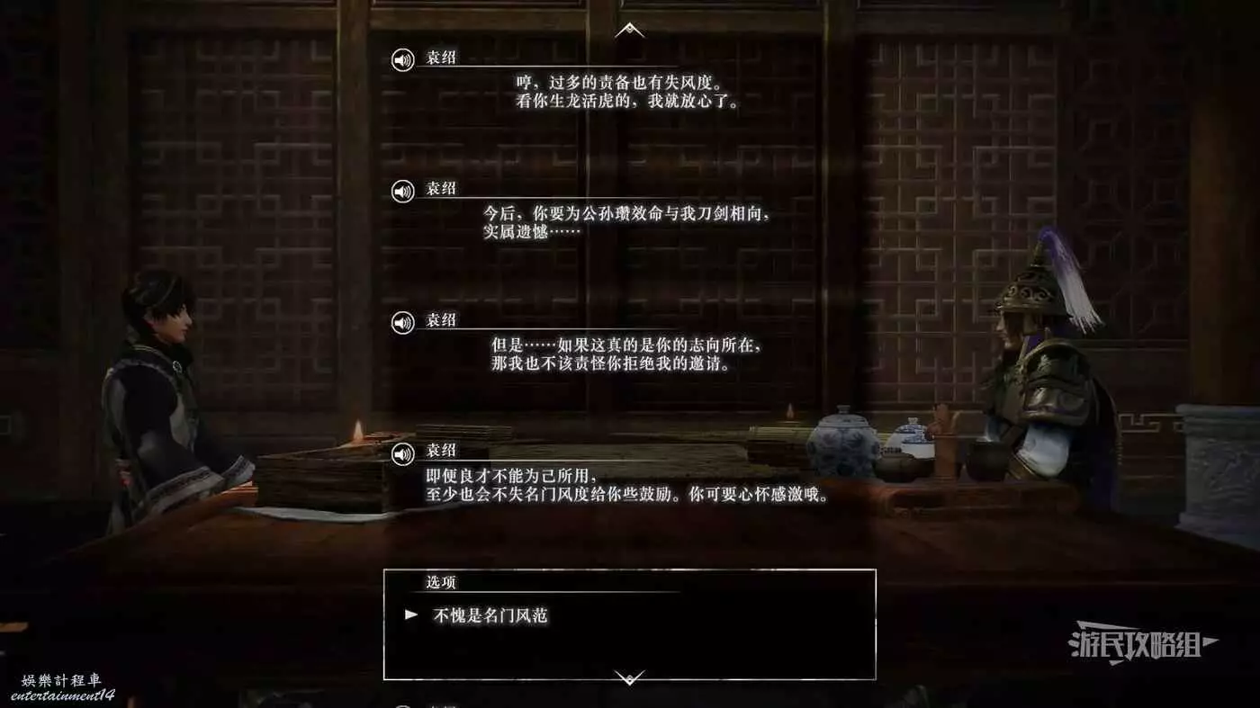 真 三國無雙 起源 袁紹情誼解鎖及升級方法 21 1 月 2025-01-21 廣告 作者:瑞破受氣包 來源:遊民星空 袁紹 情誼解鎖方法 完成第二章【十常侍之亂】後即可解鎖情誼,之後與出現在司隸洛陽的袁紹對話即可提升情誼。 第二章十常侍之亂後袁紹會出現在司隸洛陽,互動即可解鎖情誼。 第三章界橋之戰後前往旅店收取書信,然後在冀州鄴城會觸發事件,事件結束後解鎖修煉。 第四章【加入曹軍】在完成白馬延津之戰後在旅店讀信,之後前往幽州水鏡庵附近對話解鎖事件。 情誼滿級獎勵 無 對話節選 階段二 階段三 階段四
