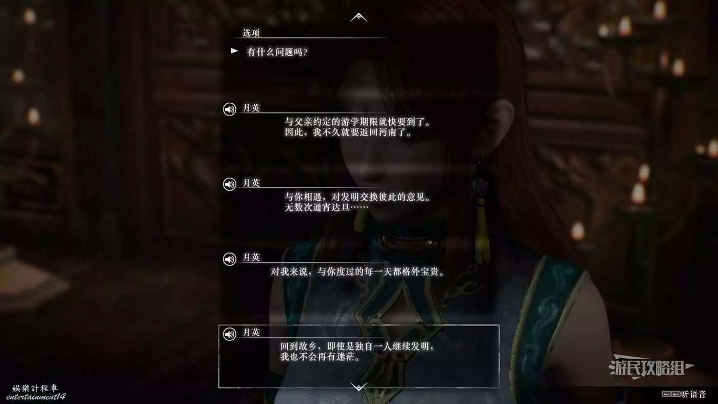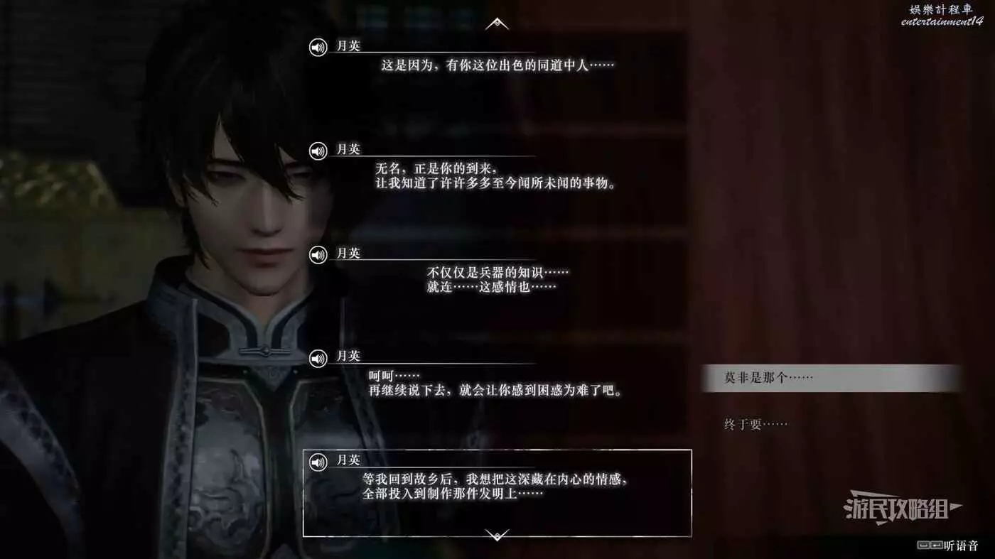 真 三國無雙 起源 月英情誼解鎖及升級方法 23 1 月 2025-01-23 廣告 作者:瑞破受氣包 來源:遊民星空 月英 情誼解鎖方法 在劉備線解鎖第四章【下邳迎擊戰】後再幽州水鏡庵前可以對話觸發事件,事件後前往豫州許都解鎖委託。 完成委託後旅店讀信前往徐州小沛觸發事件,事件後在小沛附近的兗州繼續對話解鎖委託。 完成委託後旅店讀信前往徐州小沛觸發滿級事件。 情誼滿級獎勵 無 對話節選 階段一 階段二 階段三