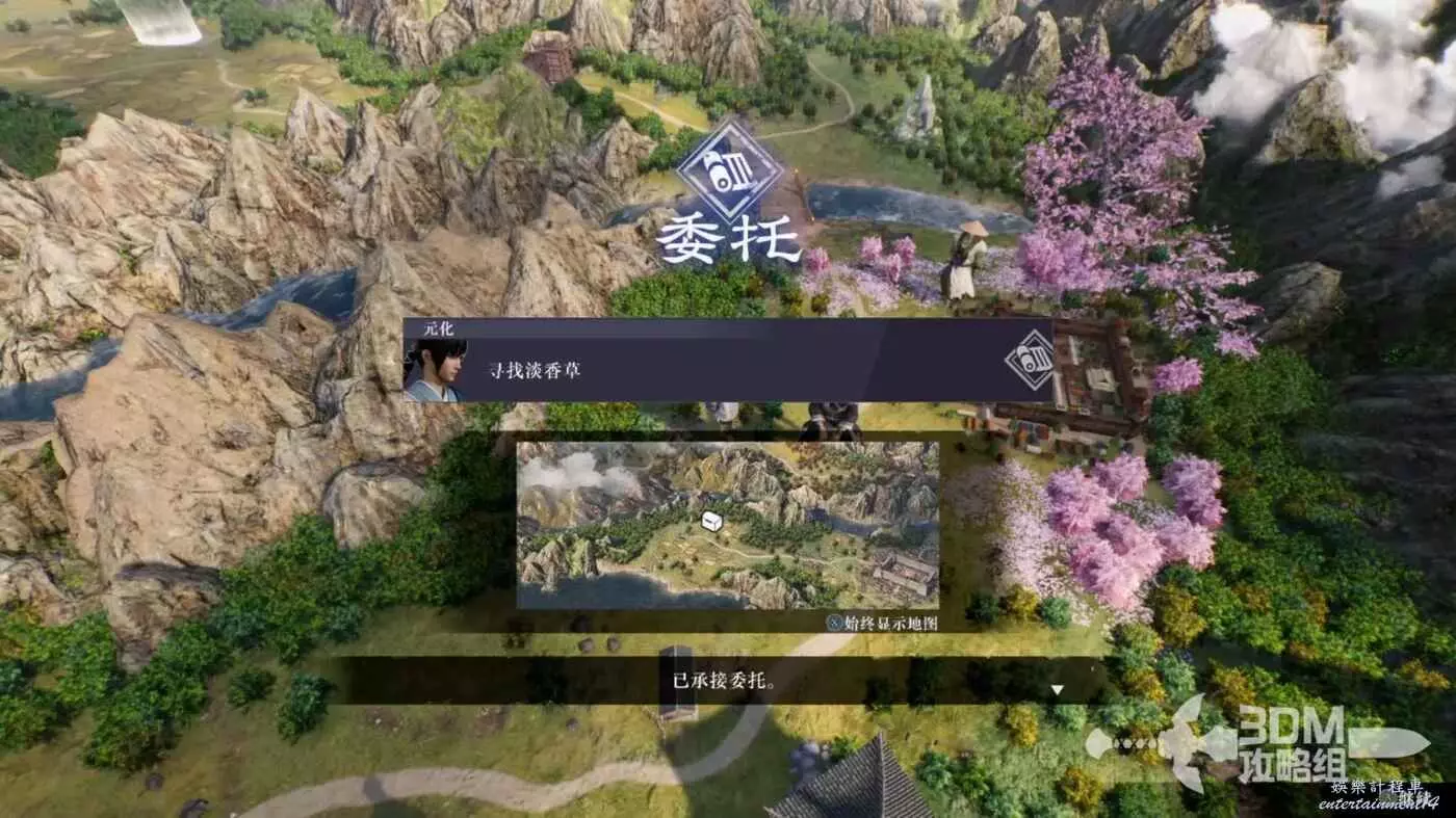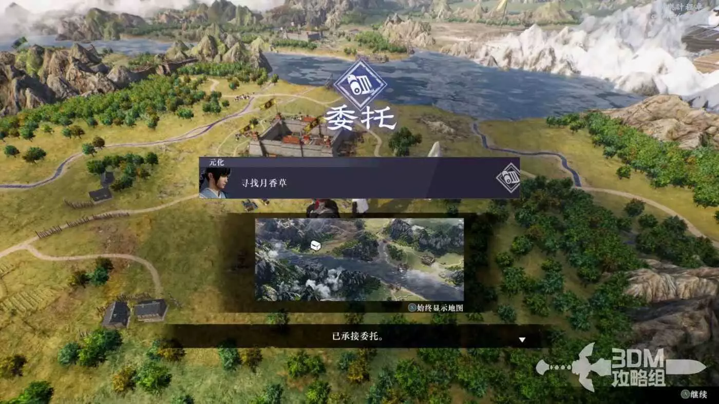 在村子觸發劇情後,閱讀書信解鎖月香草,可以在大地圖地上拾取。