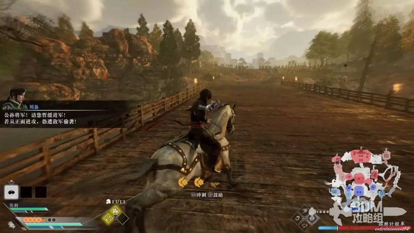 剛一開場,劉備就發現敵軍有埋伏,需要火速前往公孫瓚軍。