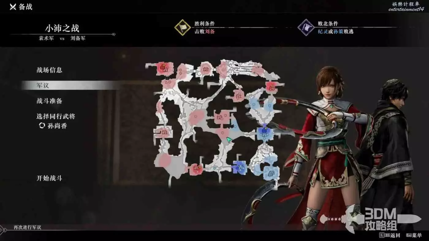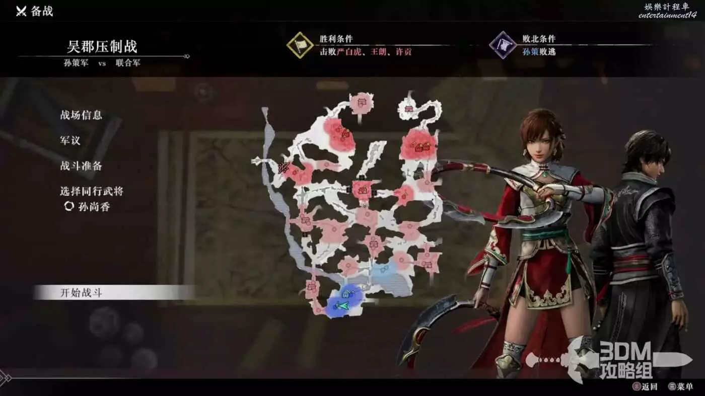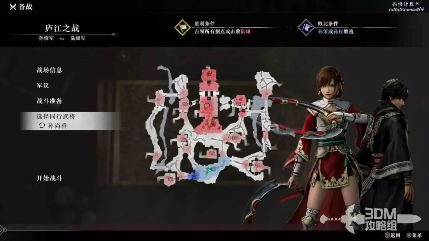 此戰只能和孫尚香同行,並且出生點在中央,需要正門面對敵軍。可以先把中間據點佔領。