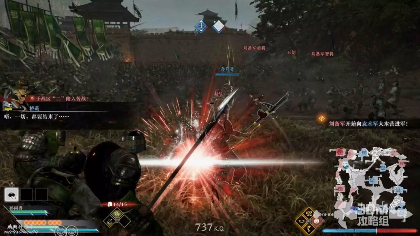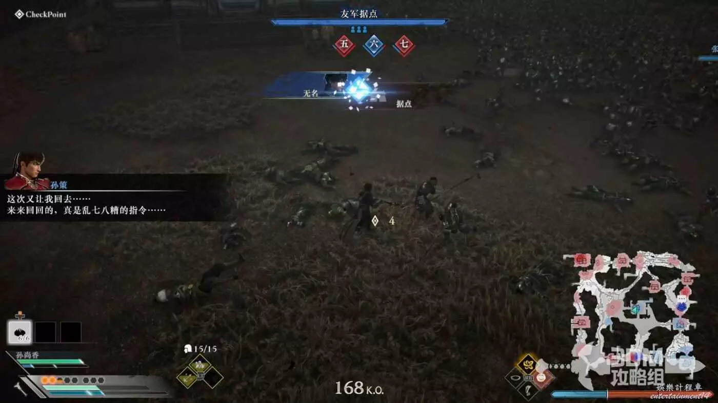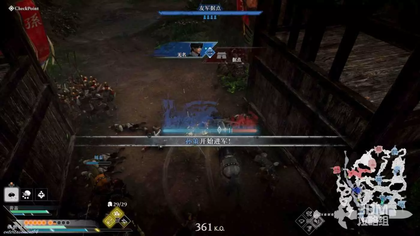 此戰只能和孫尚香同行,並且出生點在中央,需要正門面對敵軍。可以先把中間據點佔領。