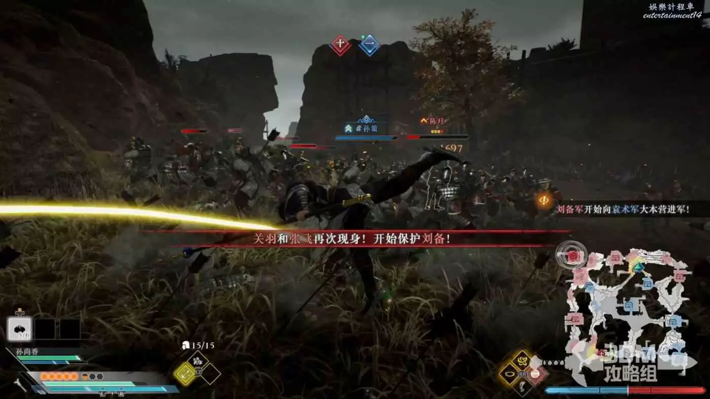 袁術大軍有數不清的將領和士兵, 要小心敵人的霸體攻擊。
