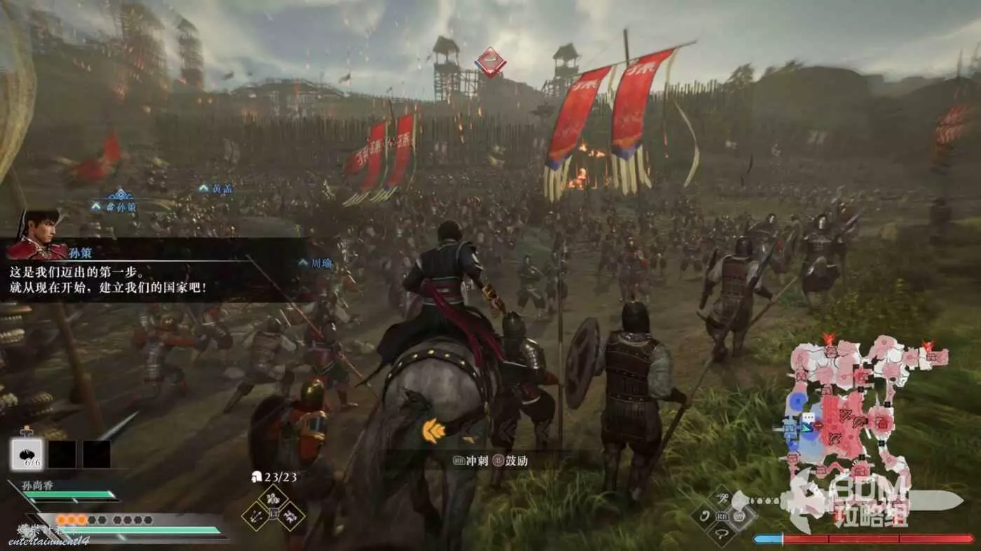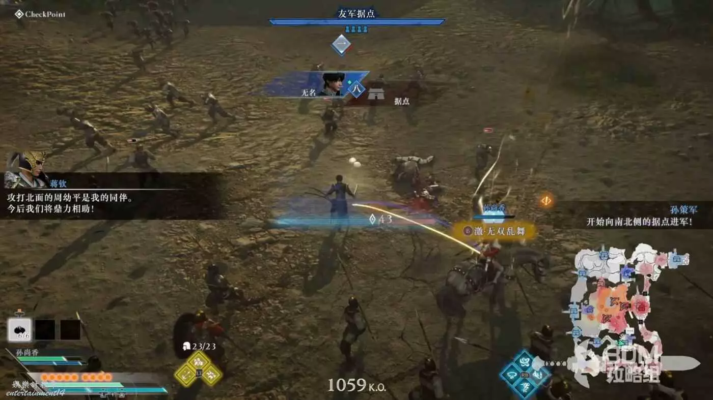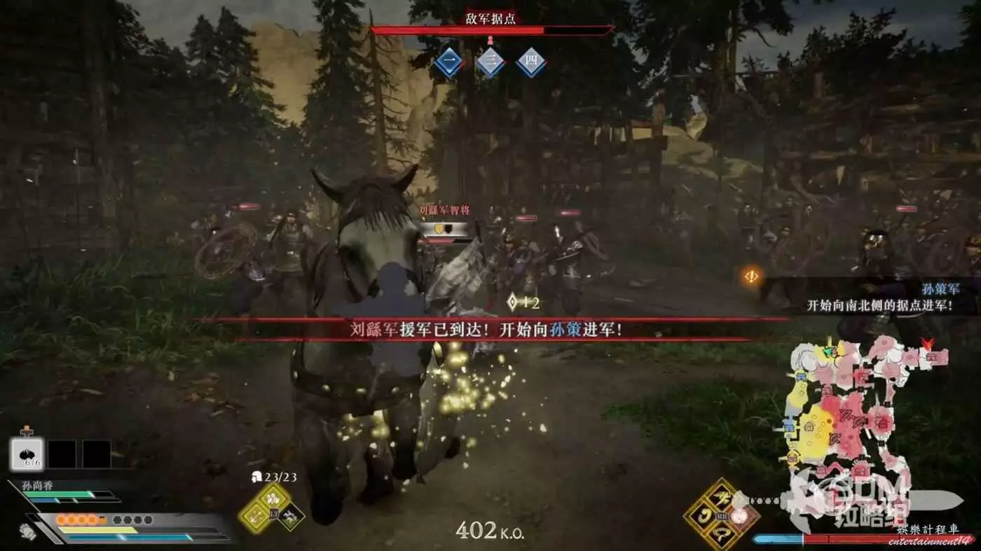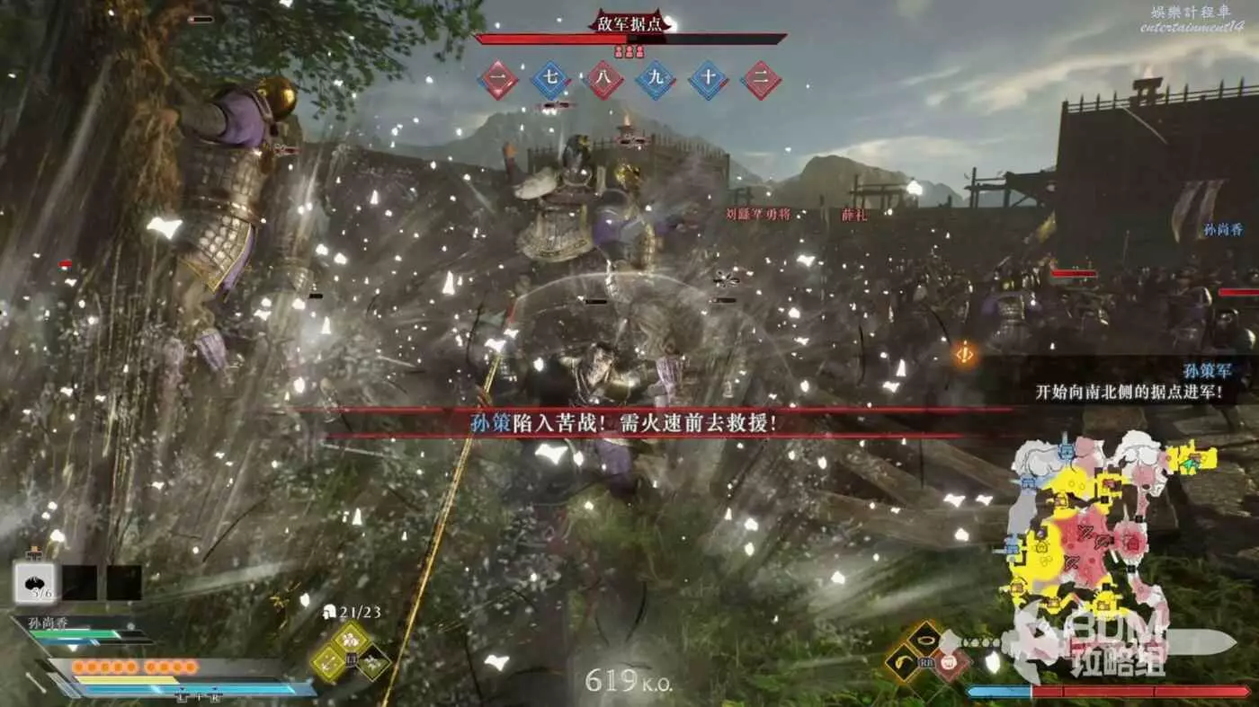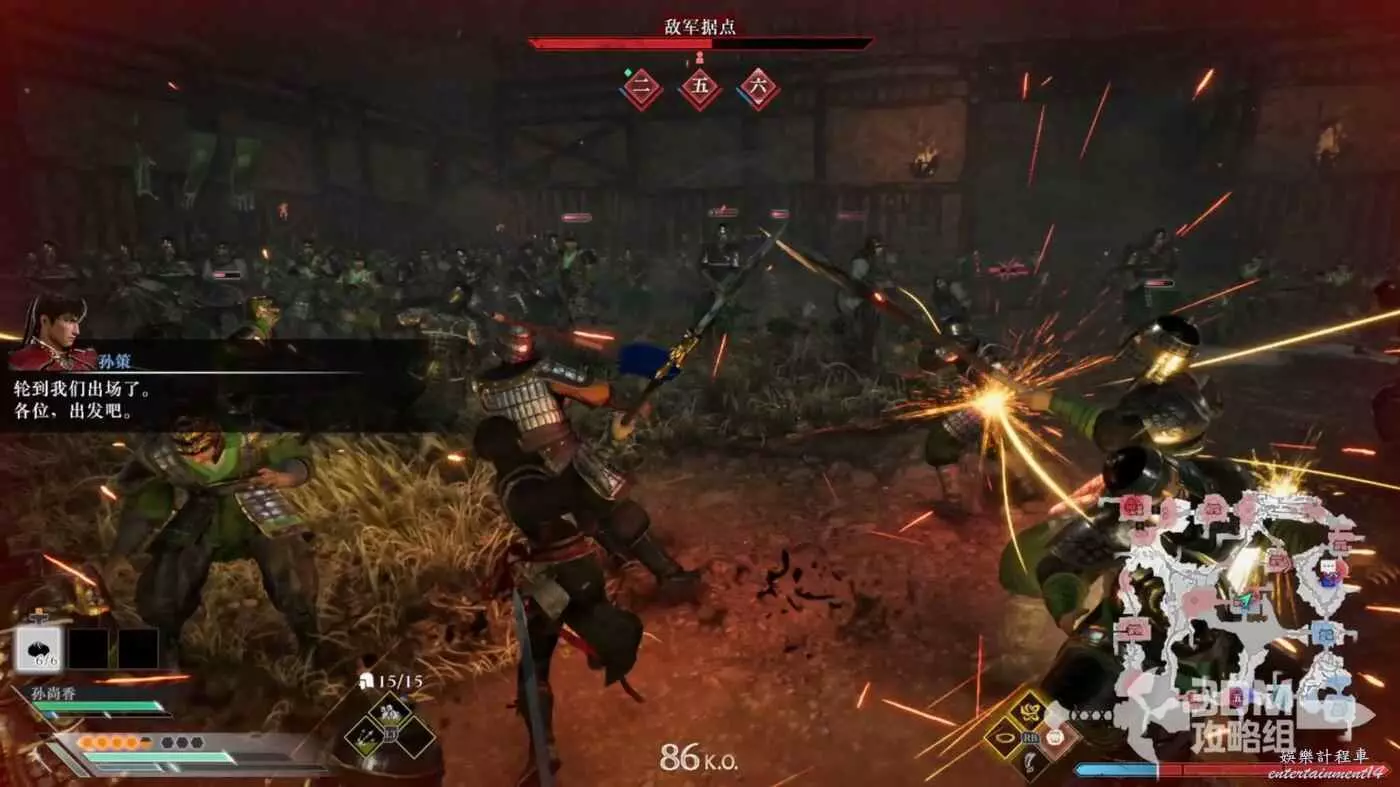 在正東側的據點內,孫策軍在裡駐紮,可以通過無雙覺醒過來直接清理,也可以等待劉備一起進攻。