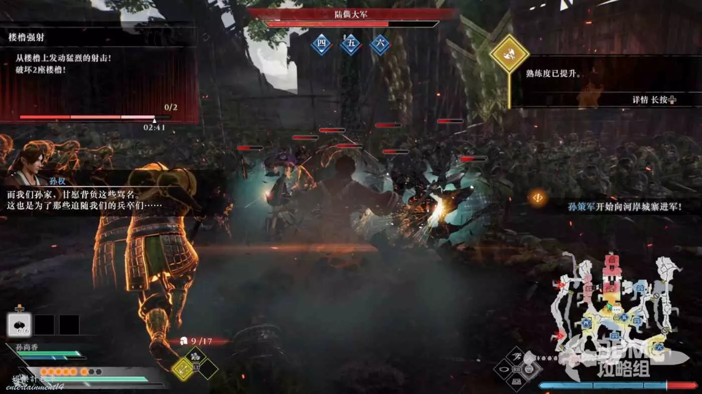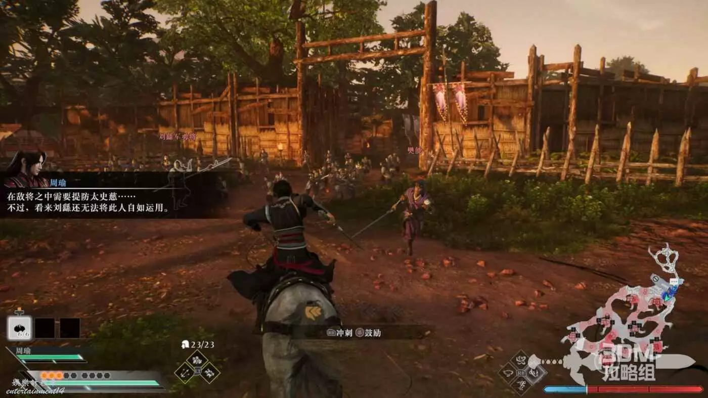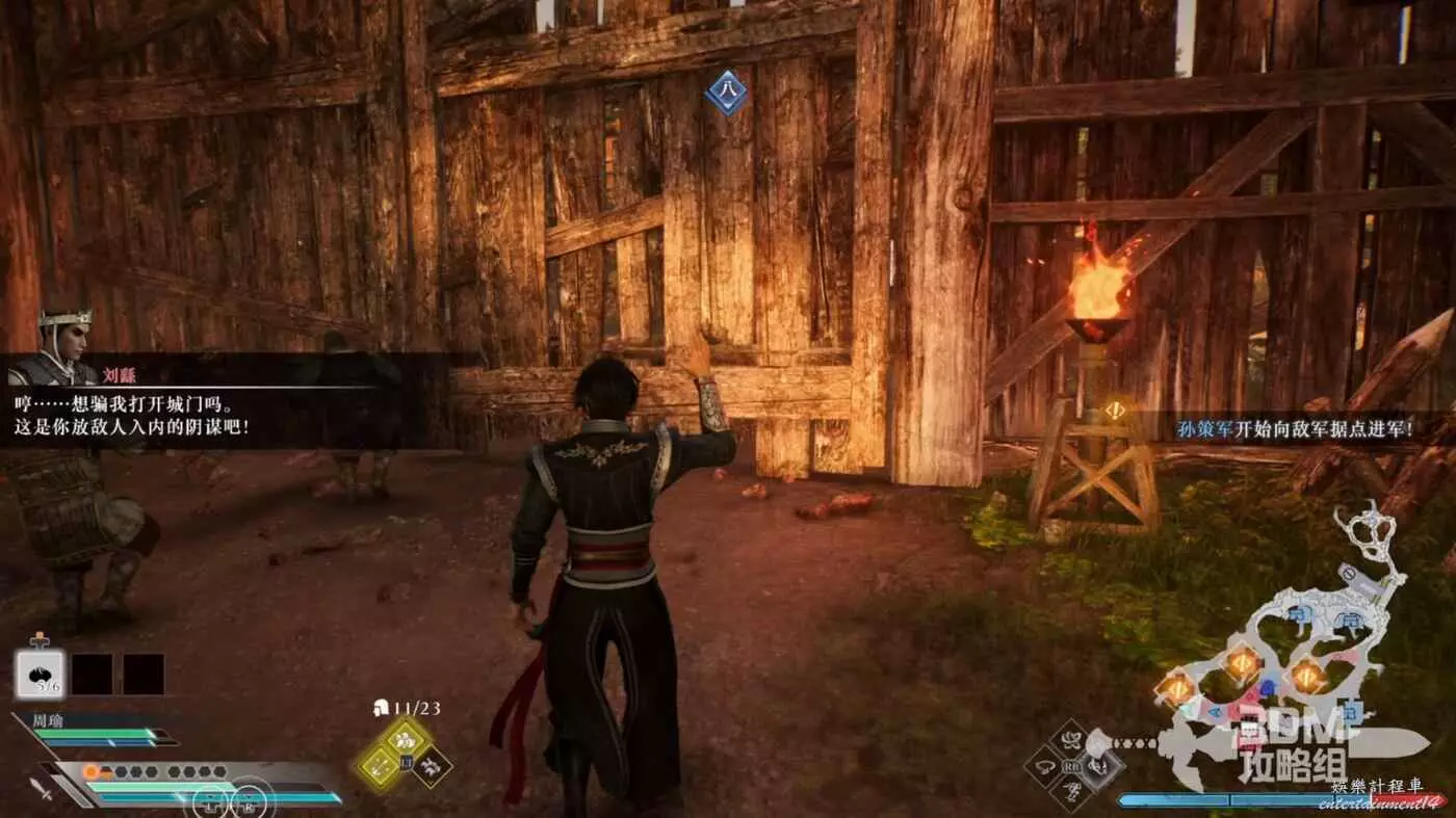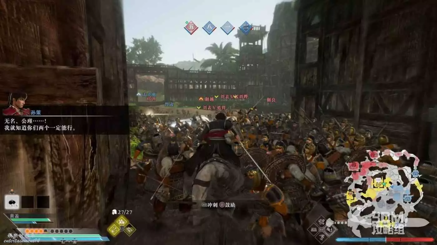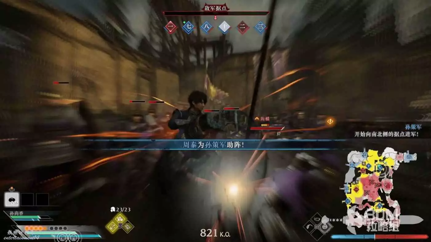 在正東側的據點內,孫策軍在裡駐紮,可以通過無雙覺醒過來直接清理,也可以等待劉備一起進攻。