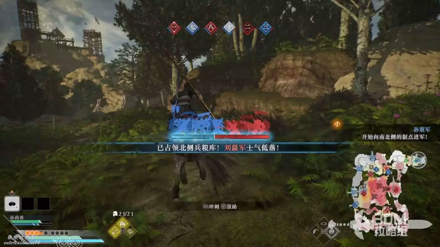 在清理周邊據點的時候,我方行軍路線上會有伏兵,需要抓緊清理,畢竟一開始士氣不是很高,我方武將容易陣亡。