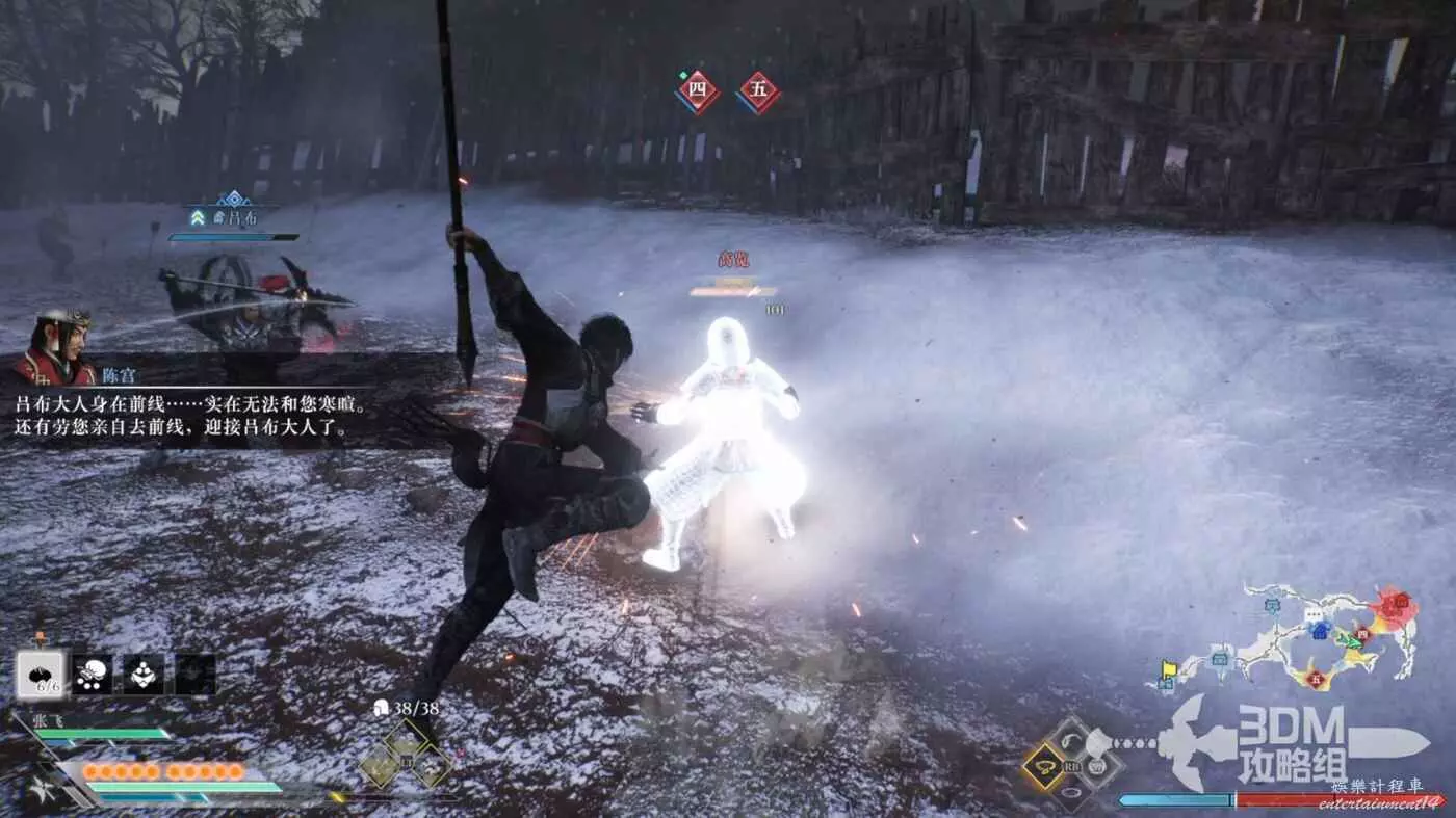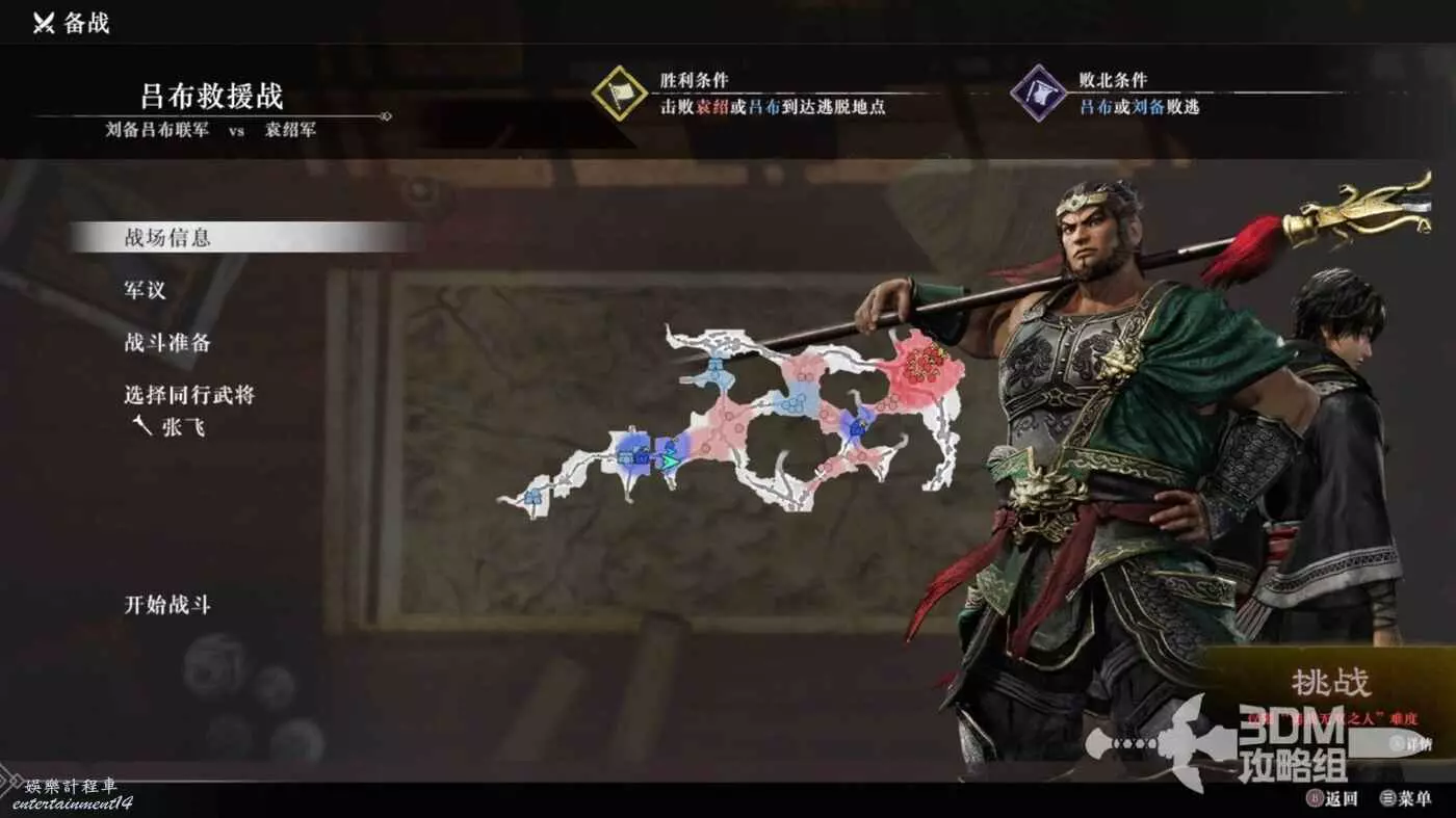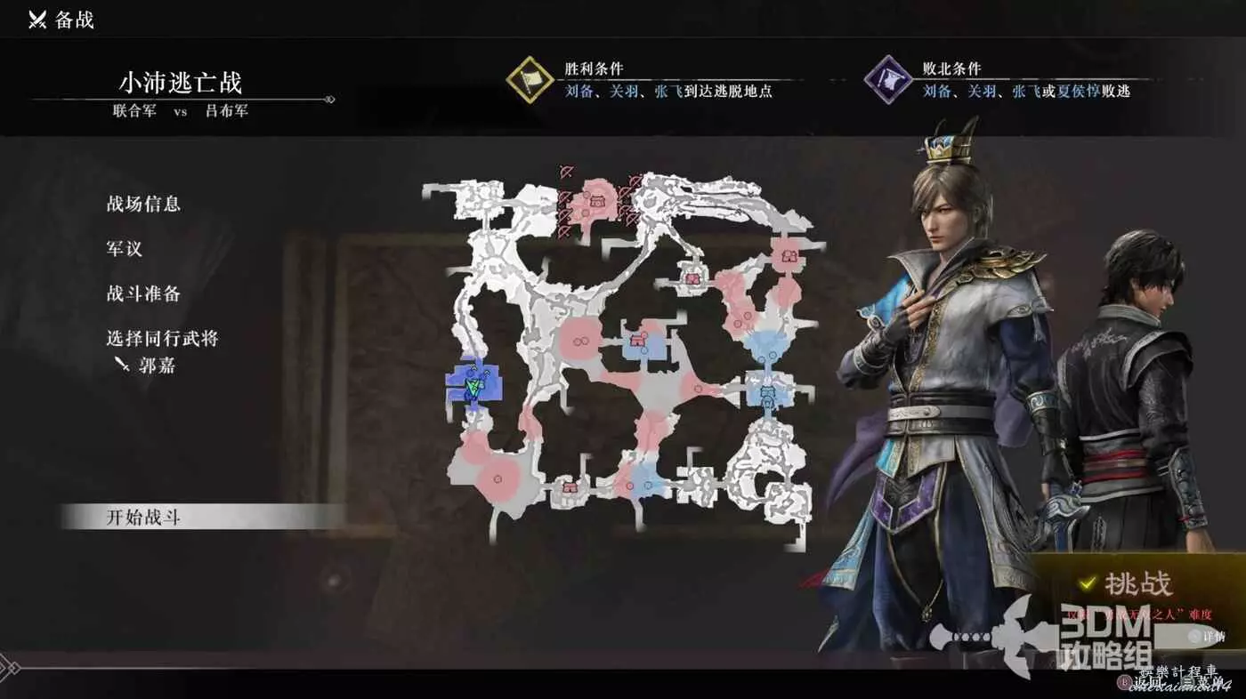本關卡為救援戰,要去支援被袁紹困住的呂布軍,將其送到撤離點便會獲得遊戲勝利。