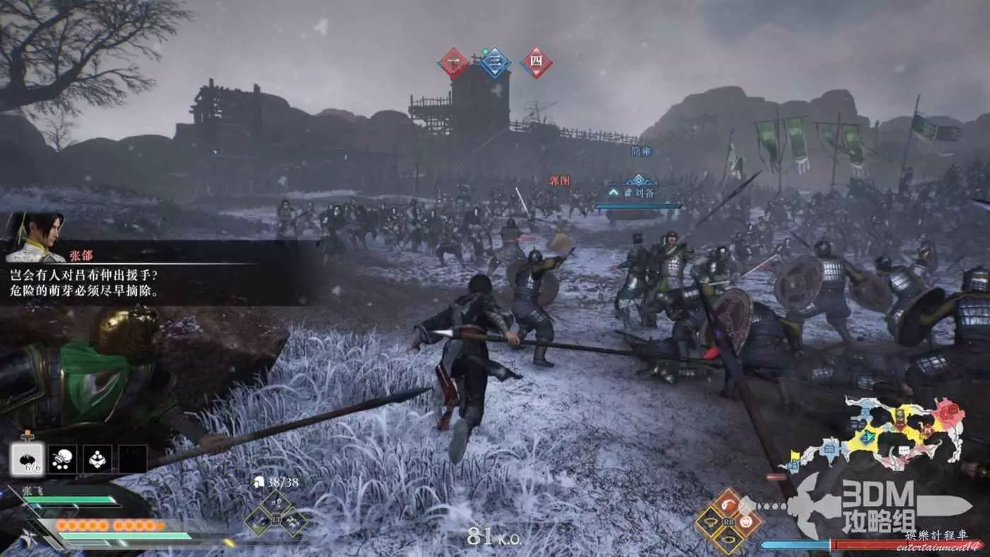 把呂布陷入到孤立無援的狀態後,敵方會出兵,而我軍援軍則會去佔領據點。