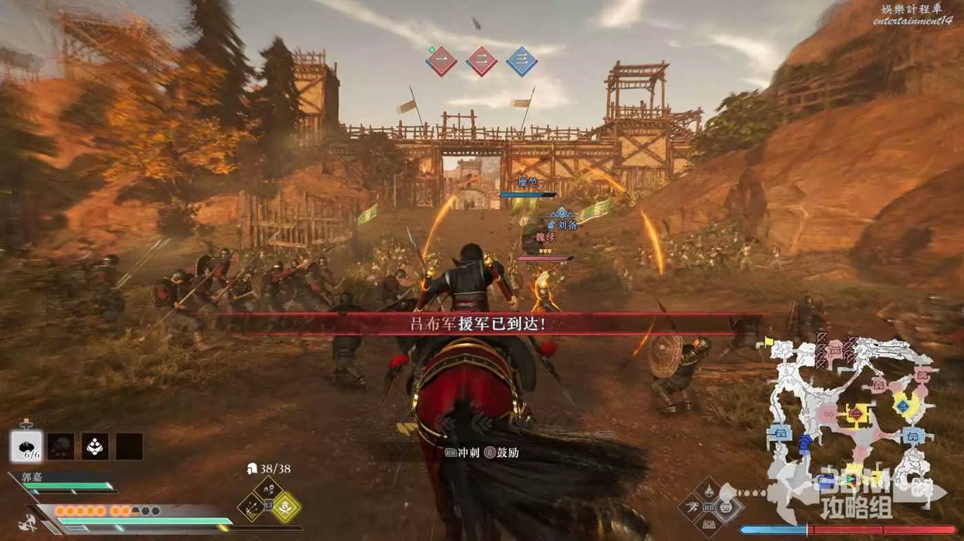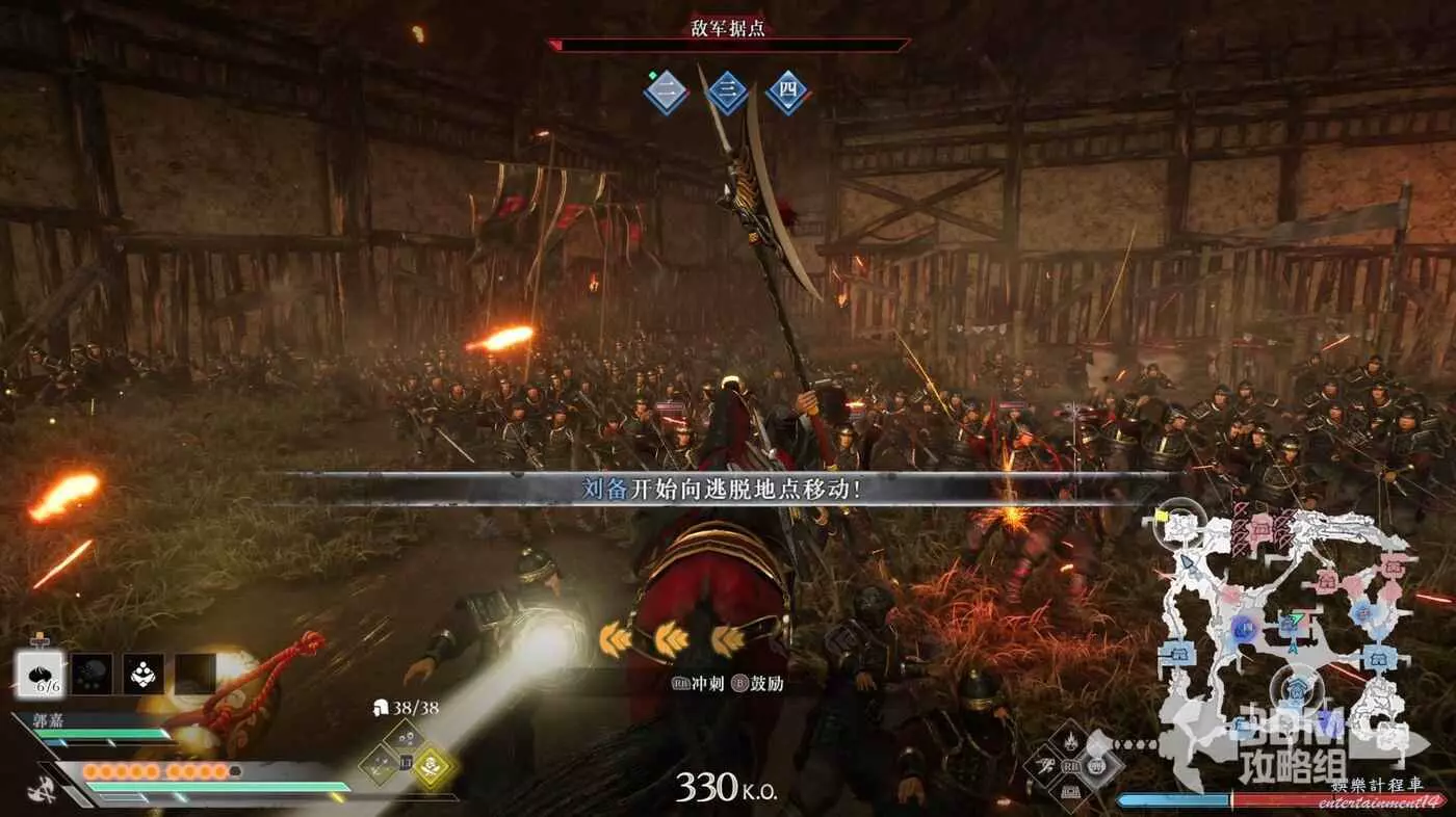 此時曹操軍會從撤離點封鎖大門,我們被前後夾擊,因此需要抓緊擊破一方部隊。