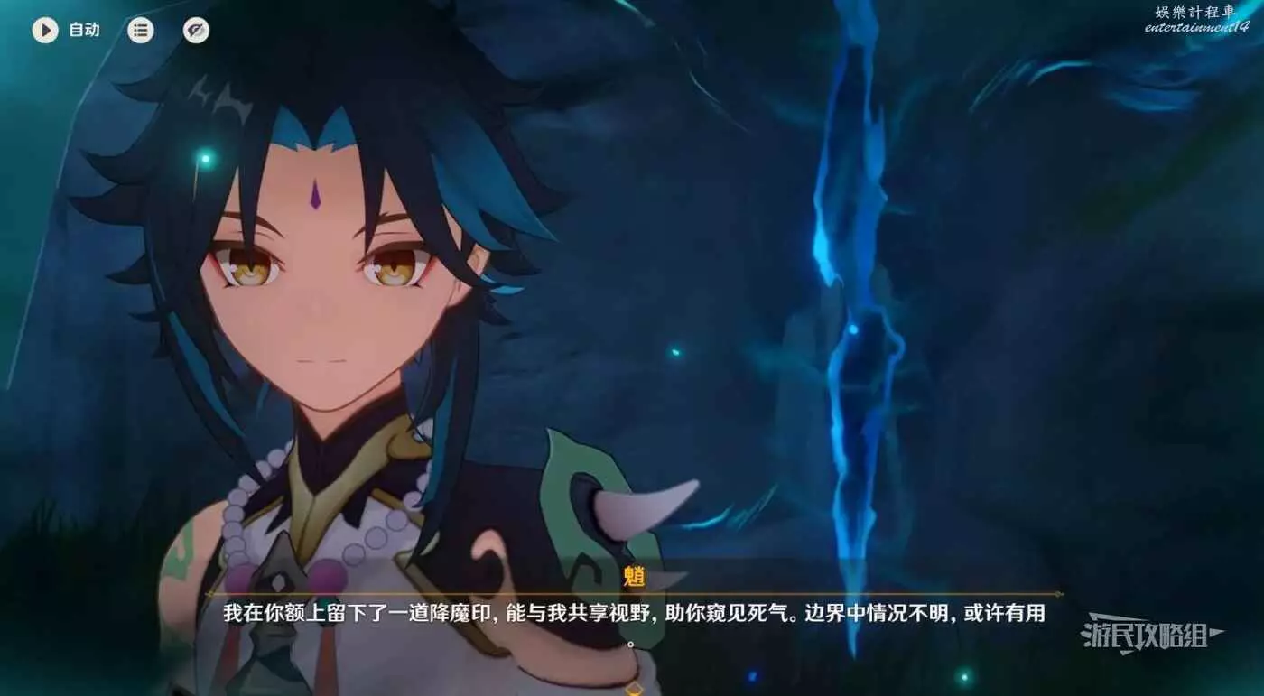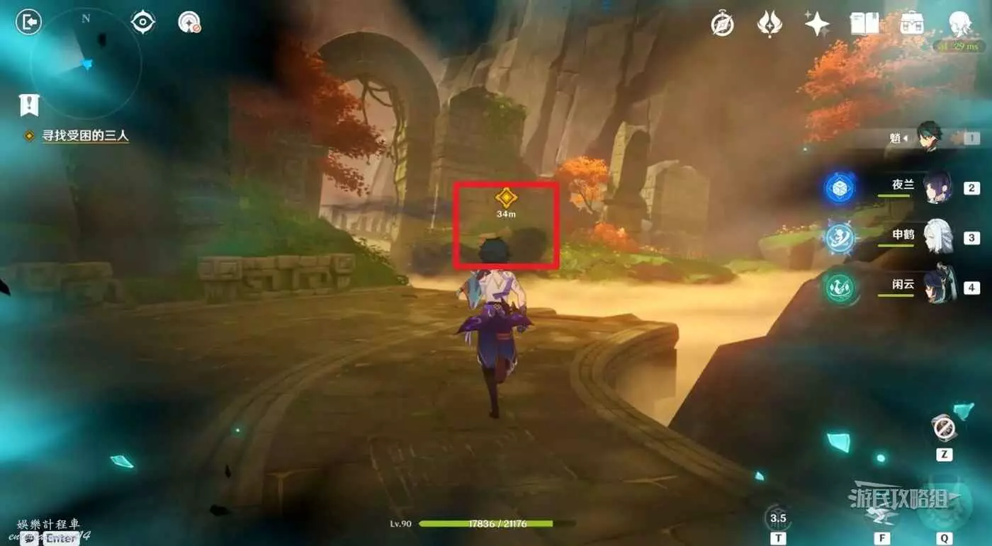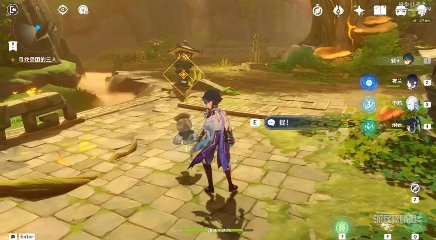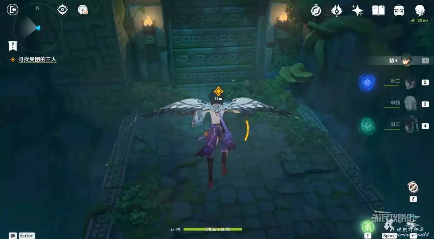 前方進入山洞秘境,進入山洞前會獲得與魈共用視野的能力,在山洞中按T即可使用。副本中需要多次擊敗丘丘人,記得提前調整好陣容。