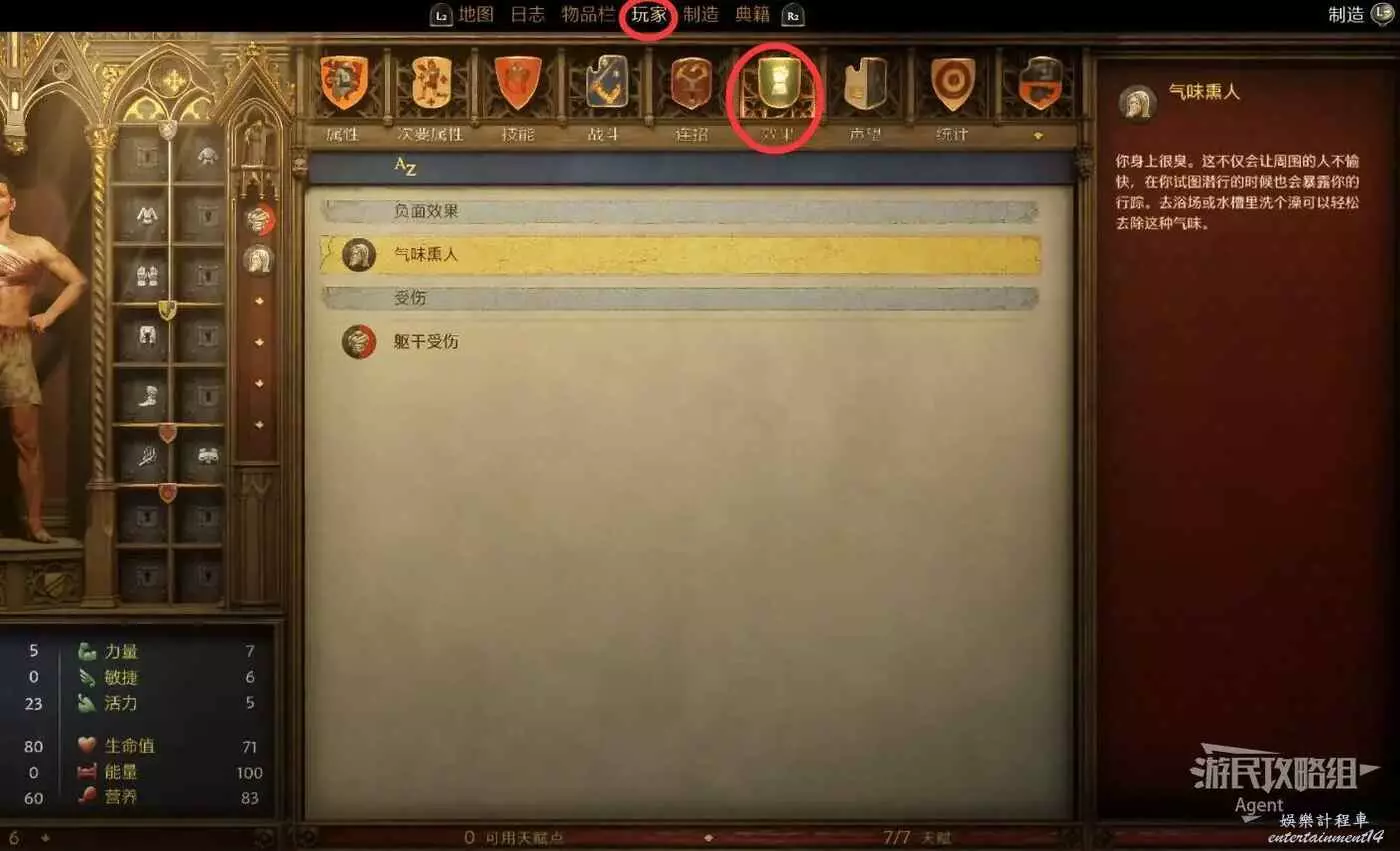 負面狀態的詳情,可在“玩家-效果”一欄查看。增益效果也會顯示在這裡。