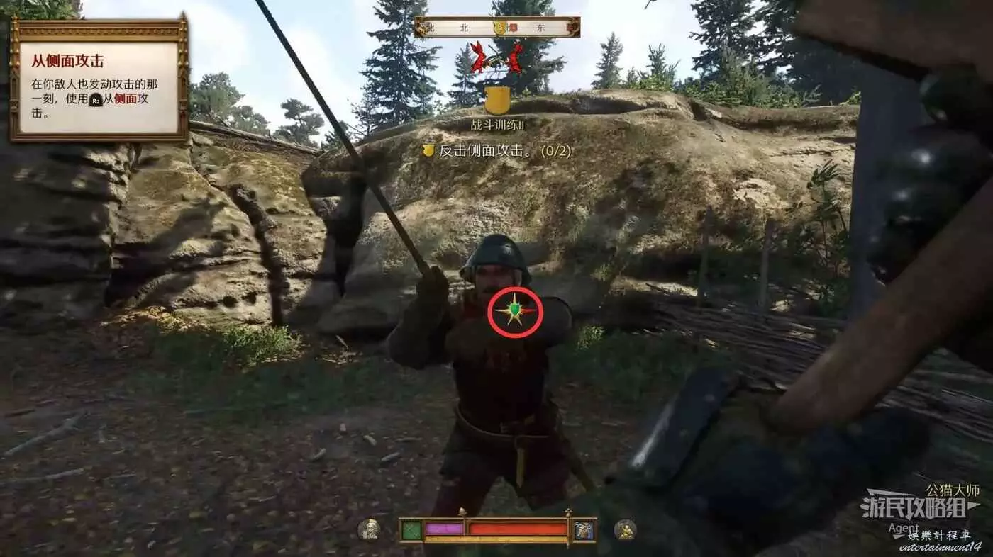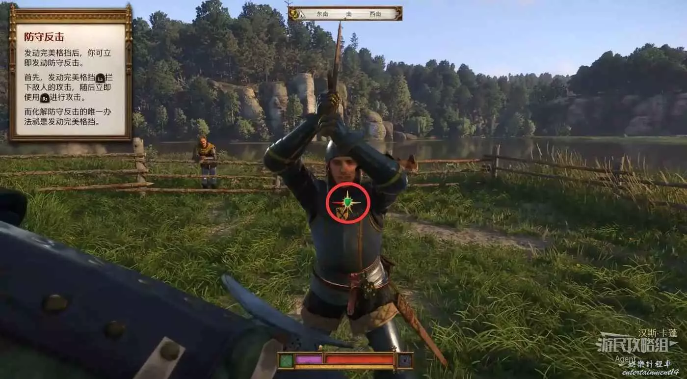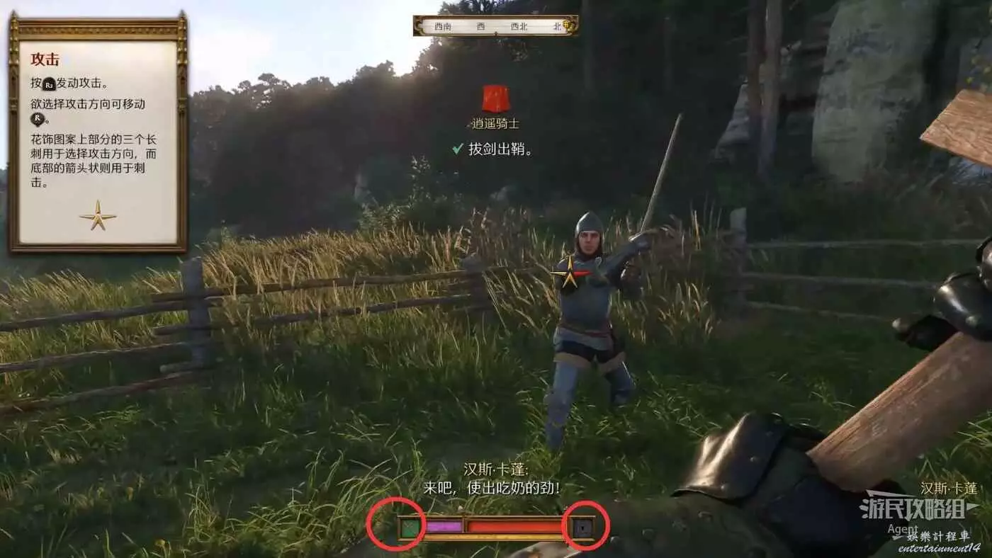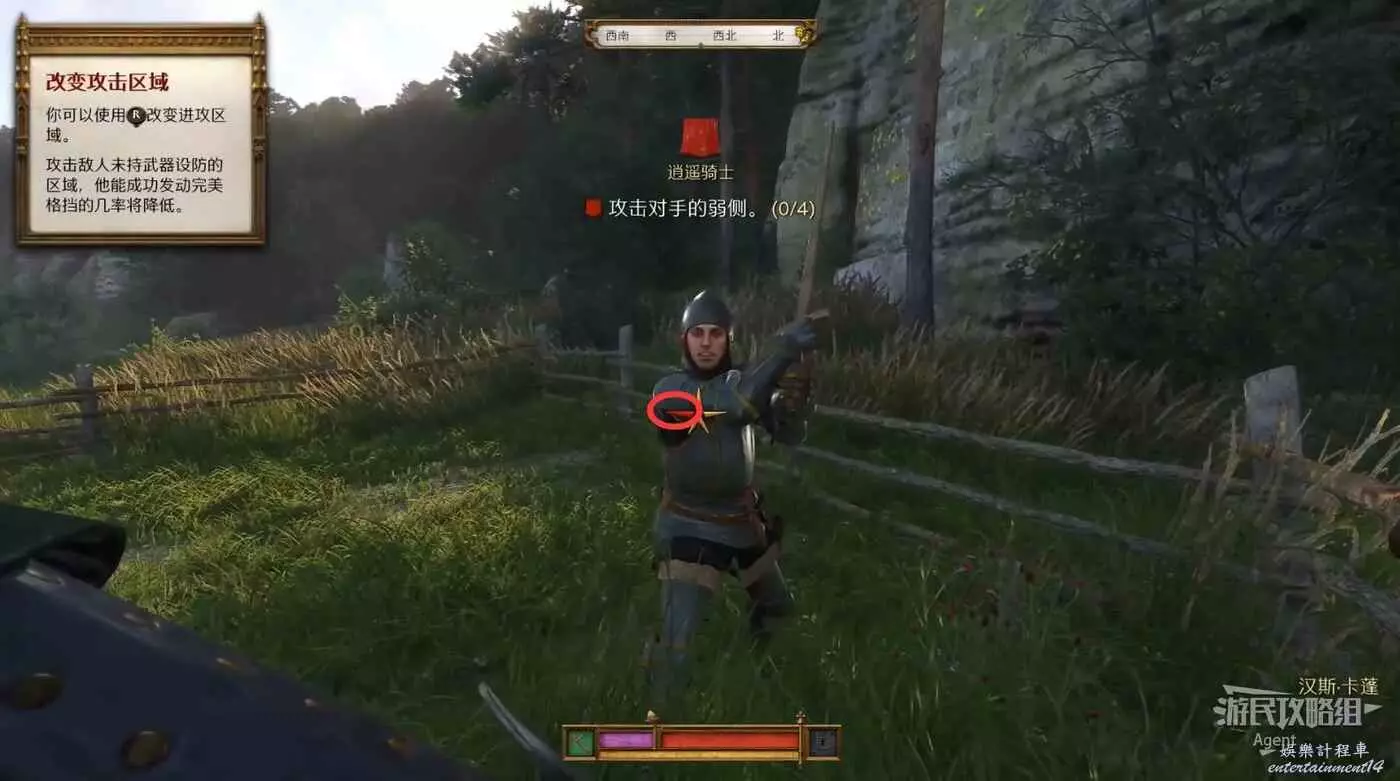 如下圖,選擇攻擊方向為左邊,攻擊敵人未持武器設防的那一面,敵人發動完美格擋的幾率就會降低,從而使你更加容易擊中敵人。