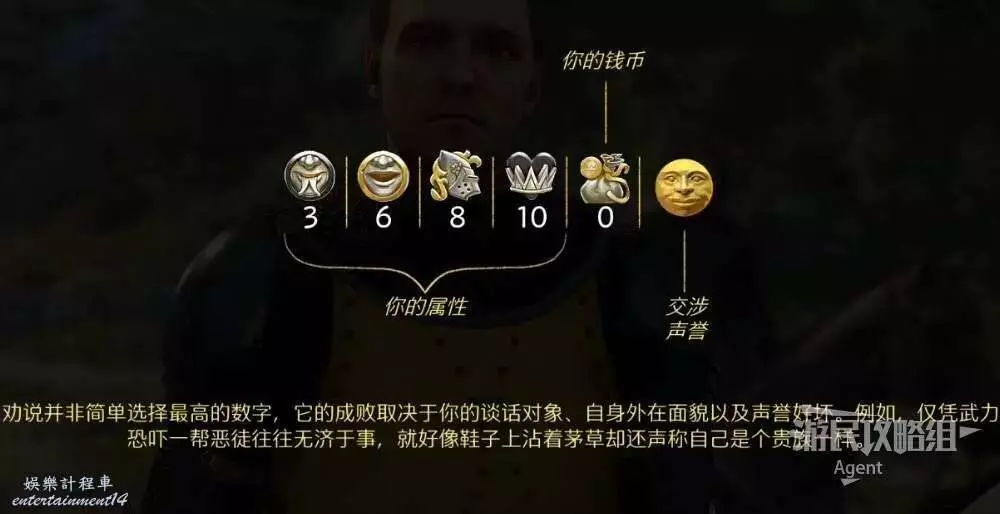 但要注意勸說並非簡單選擇屬性數位最高的選項,它的成敗取決於你的談話物件、自身外在面貌以及聲譽好壞。例如,僅憑武力恐嚇一幫惡徒往往無濟於事,就好像衣著襤褸卻還聲稱自己是個貴族一樣。