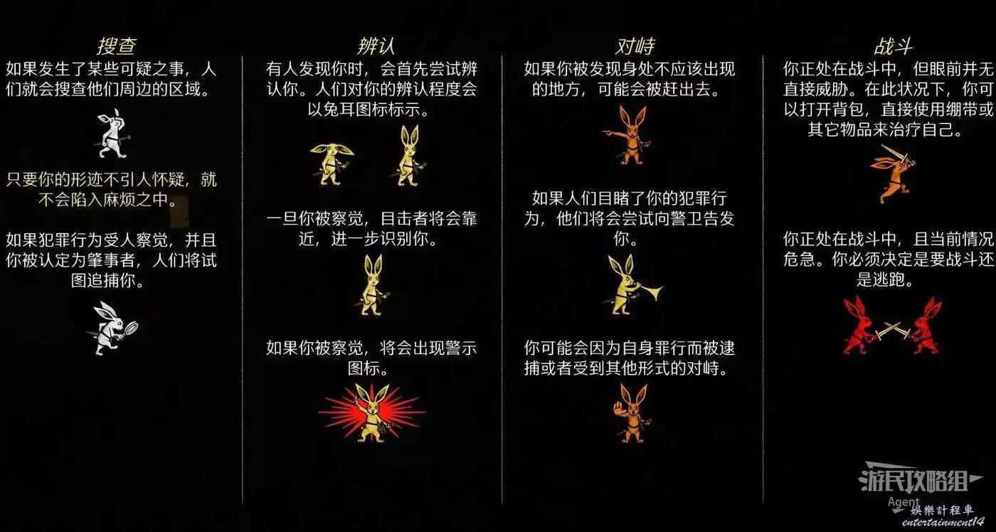 敵人對你的狀態會以兔子圖示顯示在指南針下方,各種兔子圖示代表的含義如下: