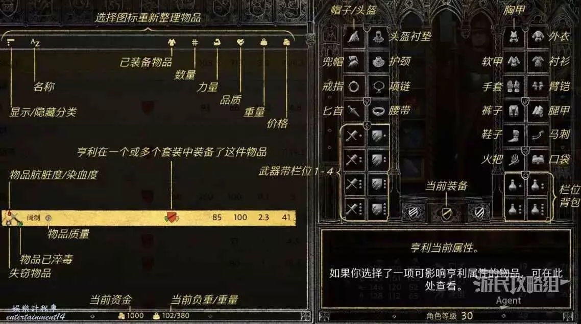 本遊戲的裝備系統較為複雜,以下為裝備欄介紹: