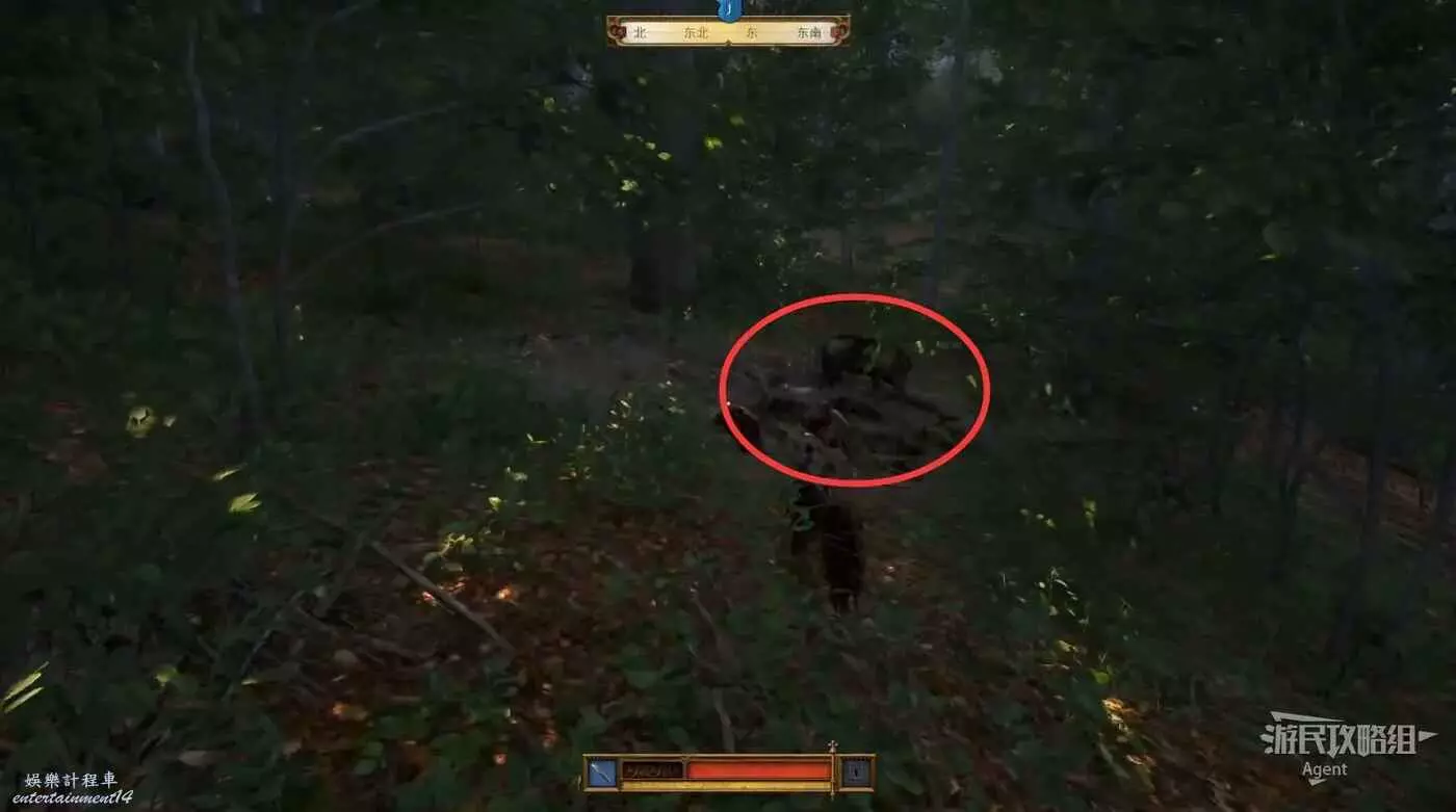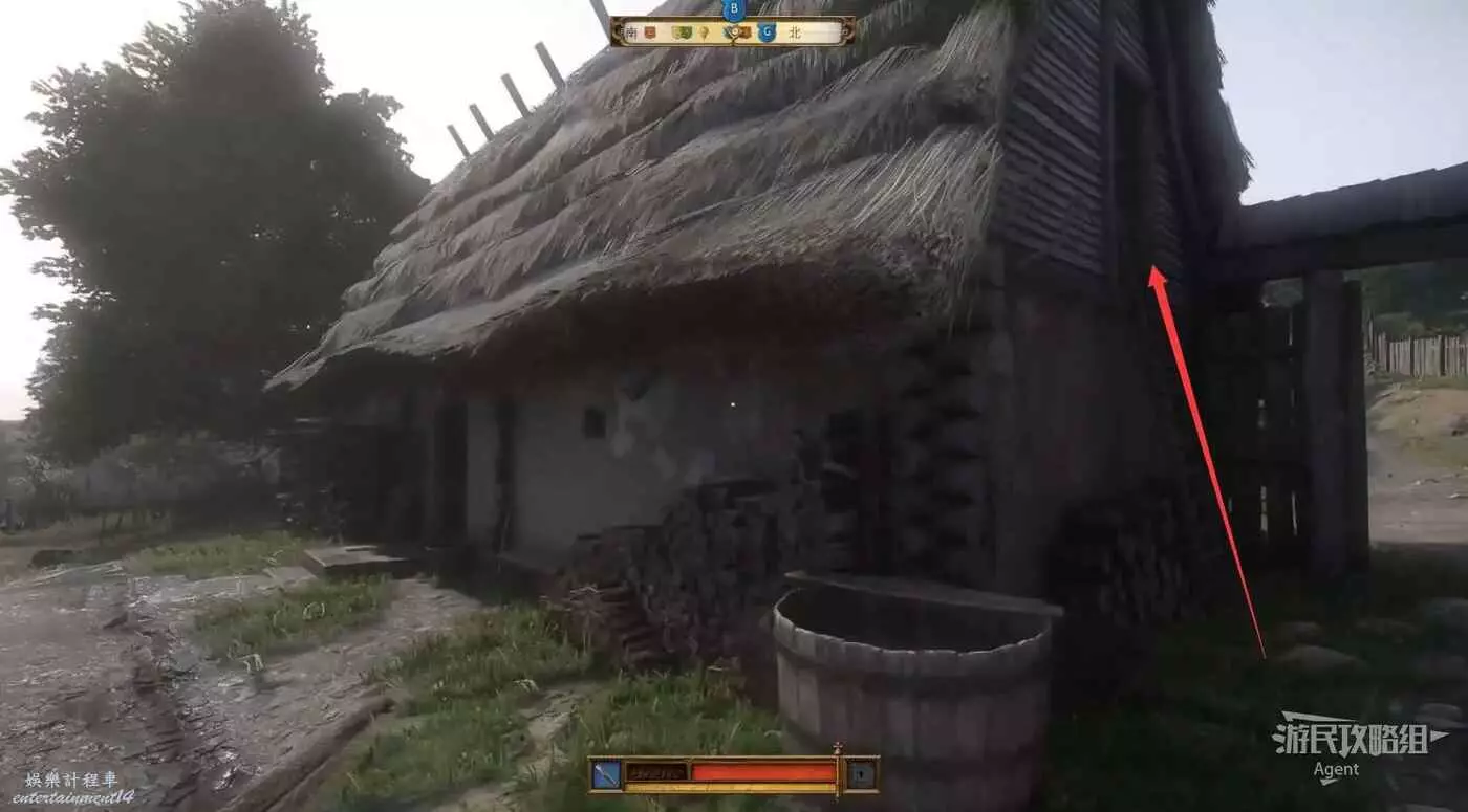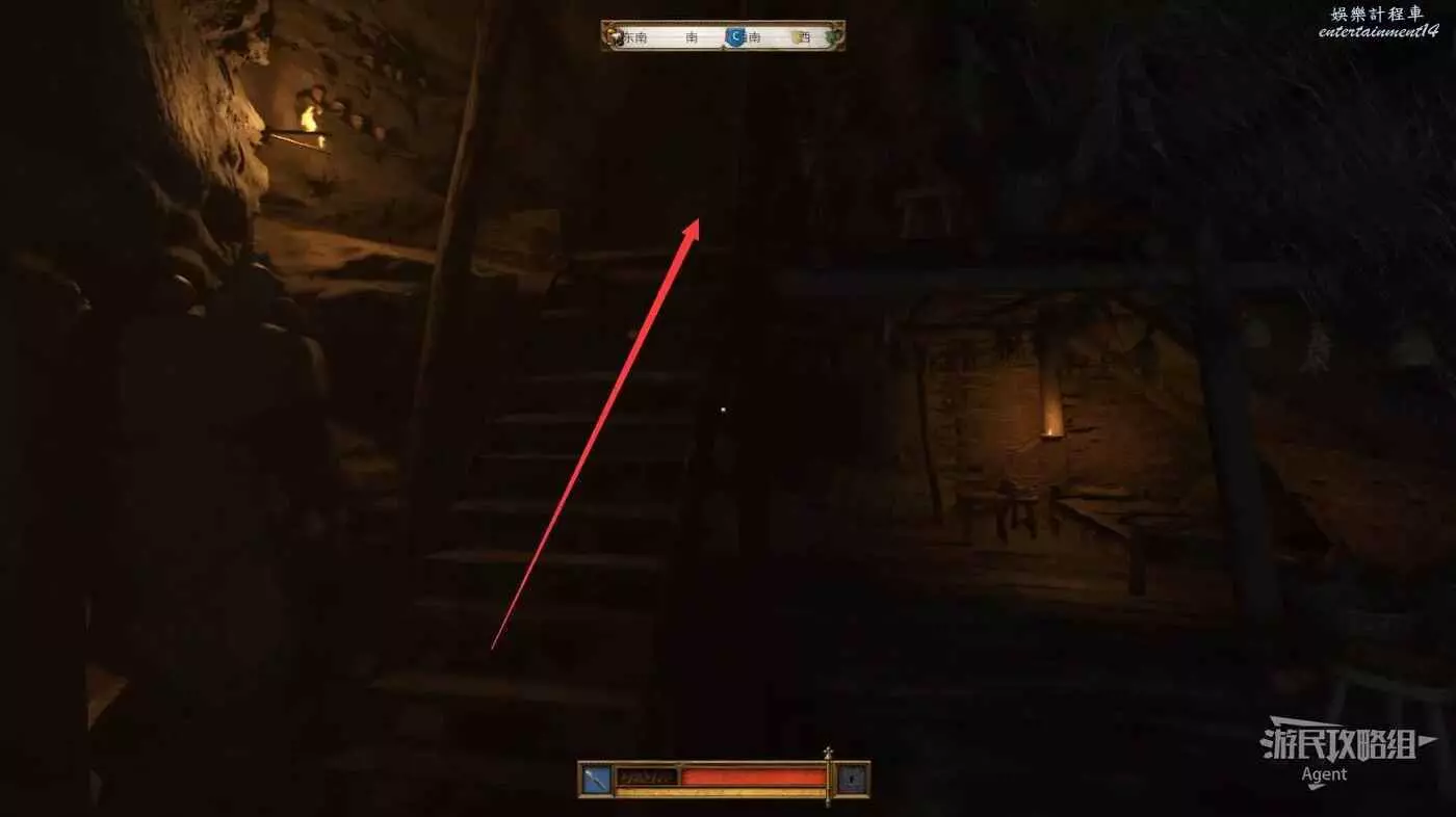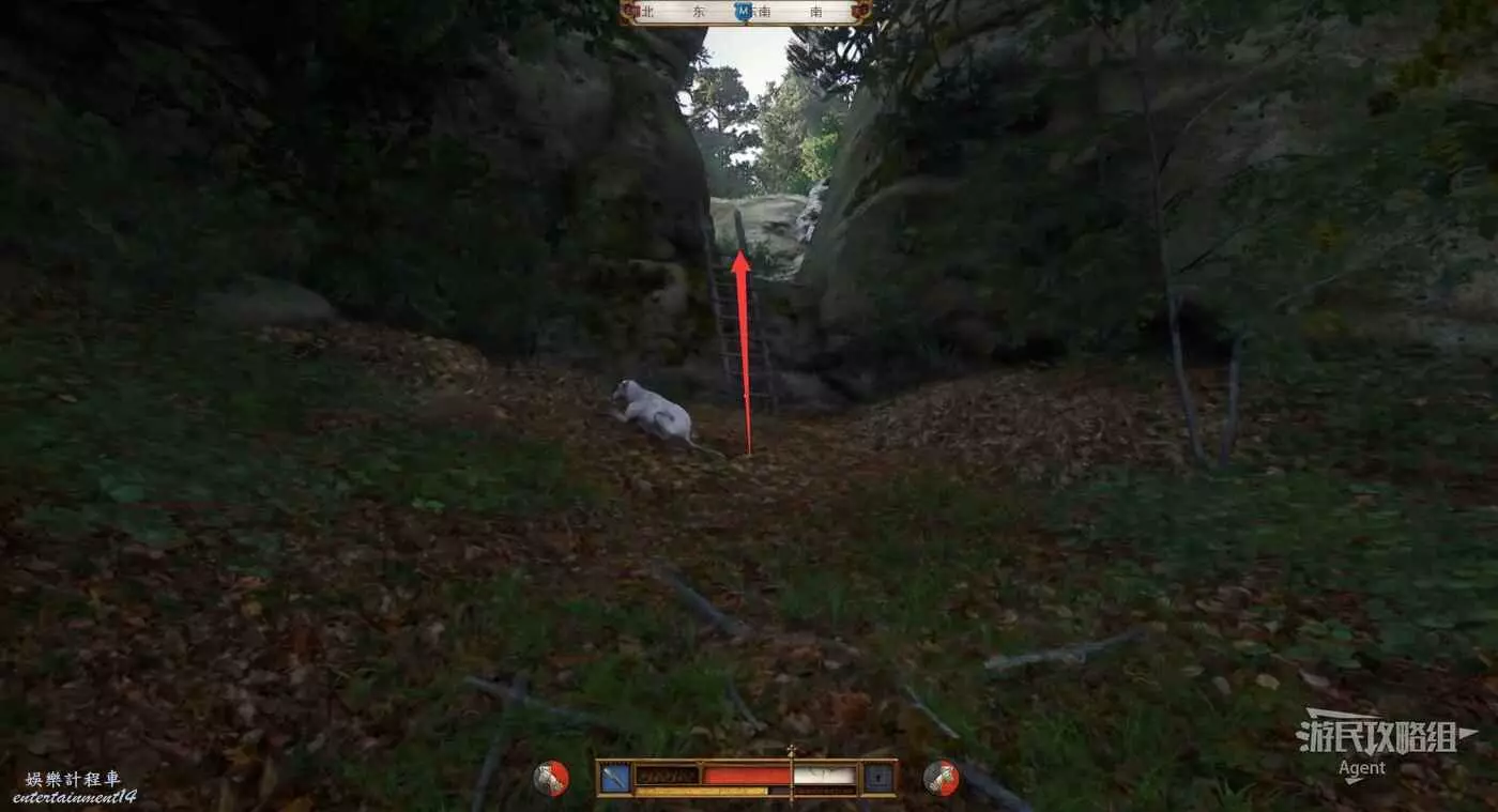 來到南面樹林,不用管狗,直接爬梯子上去。