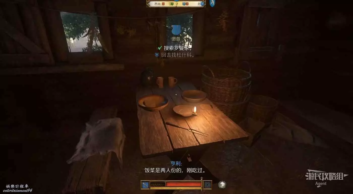 進屋查看桌上的碗,同時發現帕芙萊娜的籃子。由於羅曼不在家,鍋裡有吃的,床可以睡,不用擔心被發現,有需要的話可以休息下。