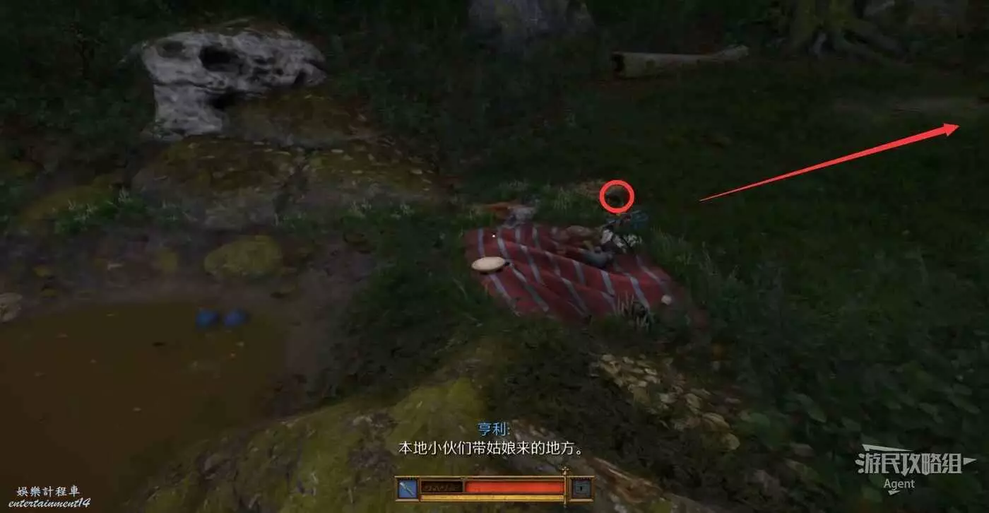 到杜什科的家找杜什科對話,得知戀人約會地點在南面樹林,沿著小溪走就能找到。