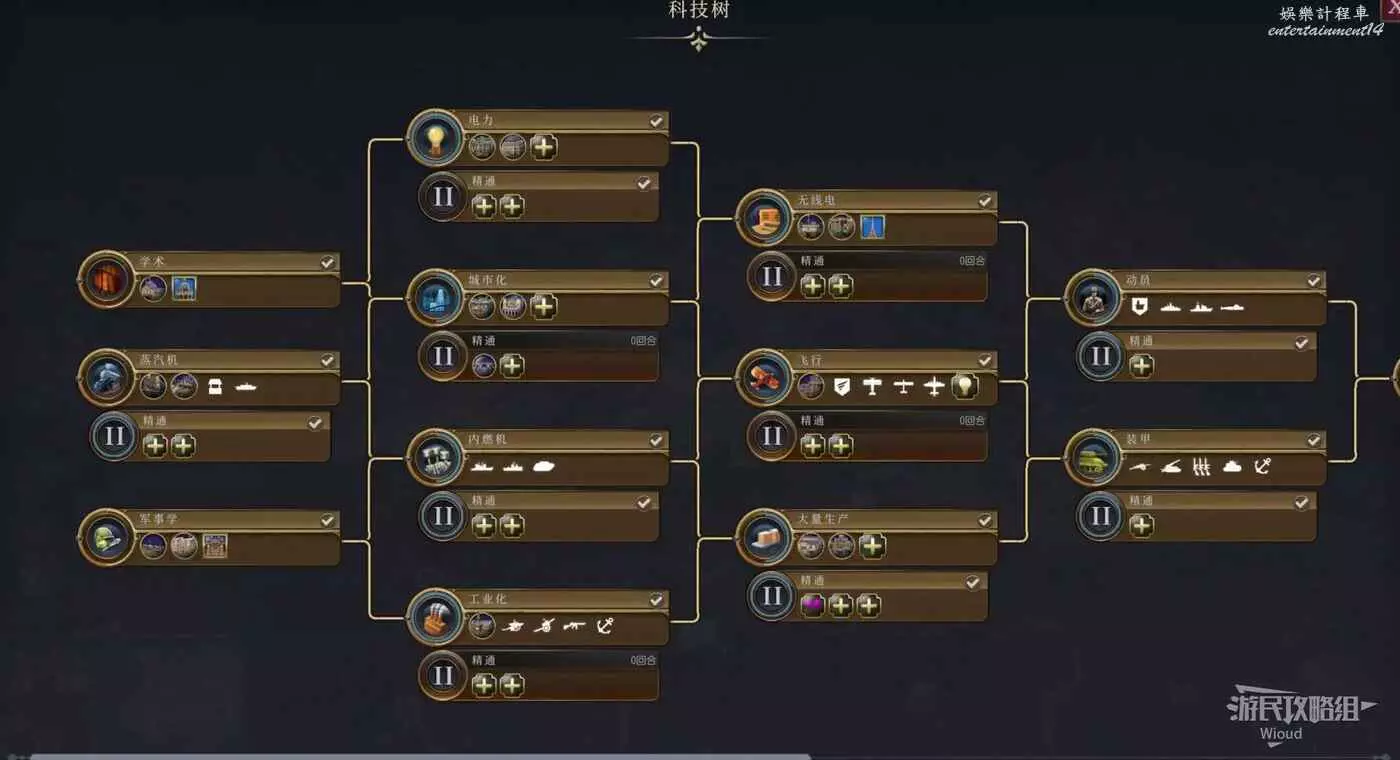 每個時代的科技樹不同,玩家只能完成當前時代的科技樹,無法跨時代研究,也就是說不會出現坦克打劍士的情況了。