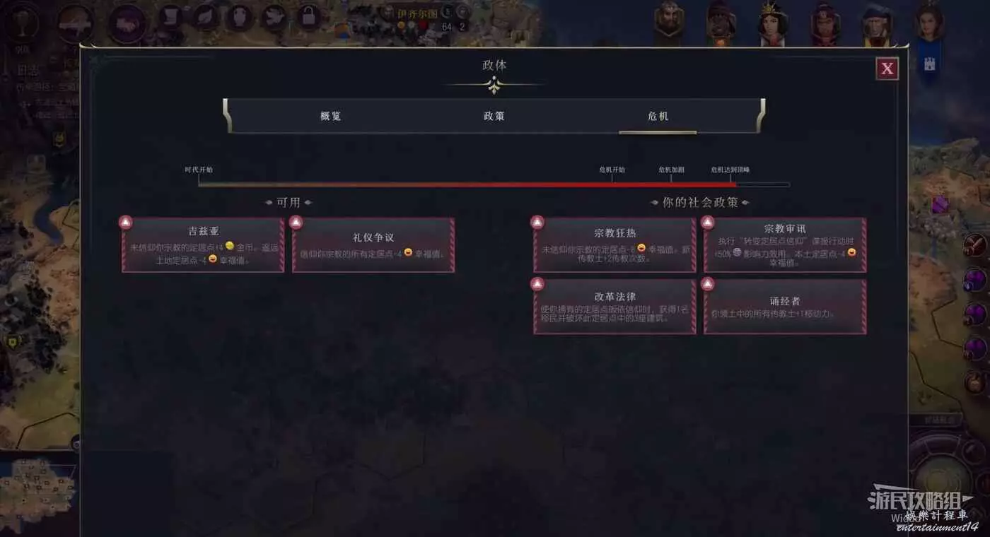 危機卡槽與可以理解為DEBUFF版的市政,隨著時代前進,你需要選擇不同的DEBUFF來進一步增加挑戰。