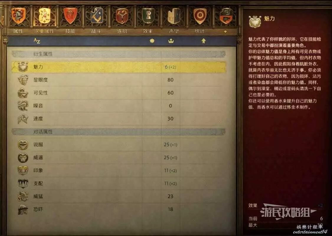 印象:由口才和魅力屬性決定。穿著華麗的衣服和擁有較高聲譽時更容易成功。