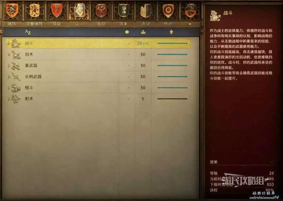 戰鬥:作為戰士的總體能力。從所有戰鬥中提升等級。