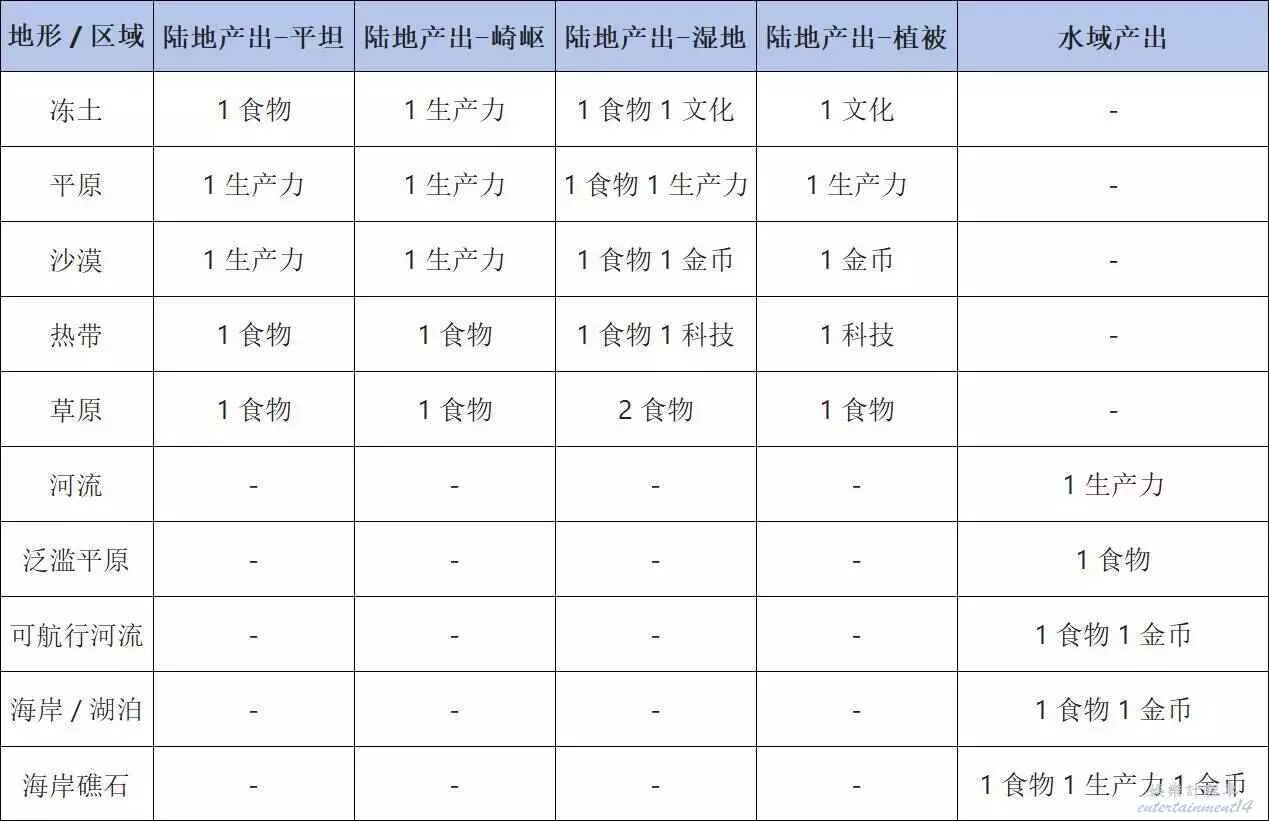 通過這個表格就能輕鬆判斷出後續遊戲局內的地塊具體有哪些加成了。
