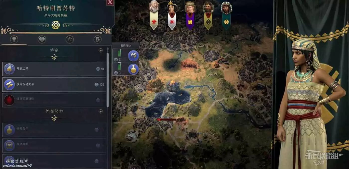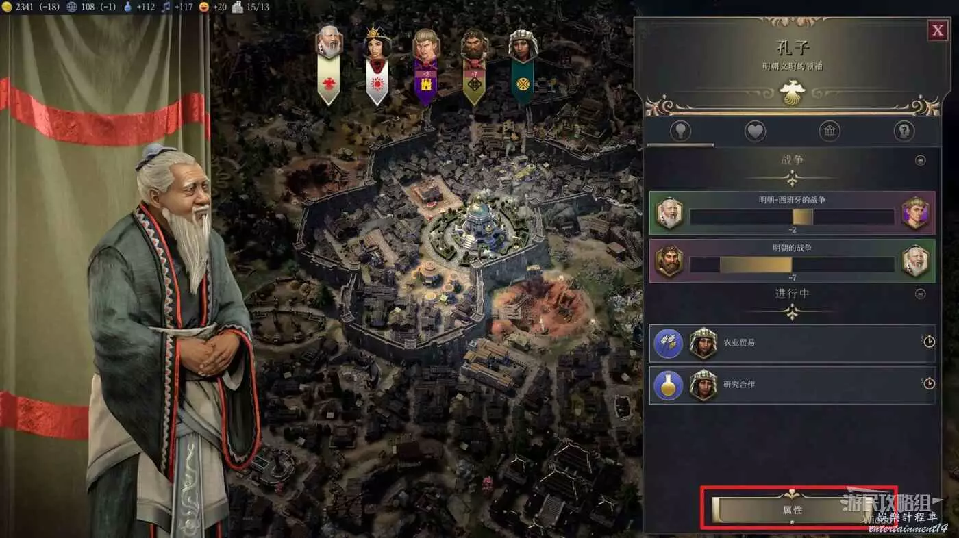 通過提升你的幸福度或影響力數值,你能夠解鎖專門用於外交板塊的領袖屬性點數,這兩項數值越高,你在領袖屬性功能表外交板塊中可花費的點數就越多,你可以通過點擊螢幕右上角的領袖頭像進入該功能表。