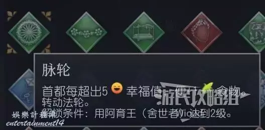 每超出5點幸福值,首都獲得 +1糧食。鑒於此效果可疊加,你不妨考慮選用。通過“世界摒棄者”阿育王本人升至2級獲得。