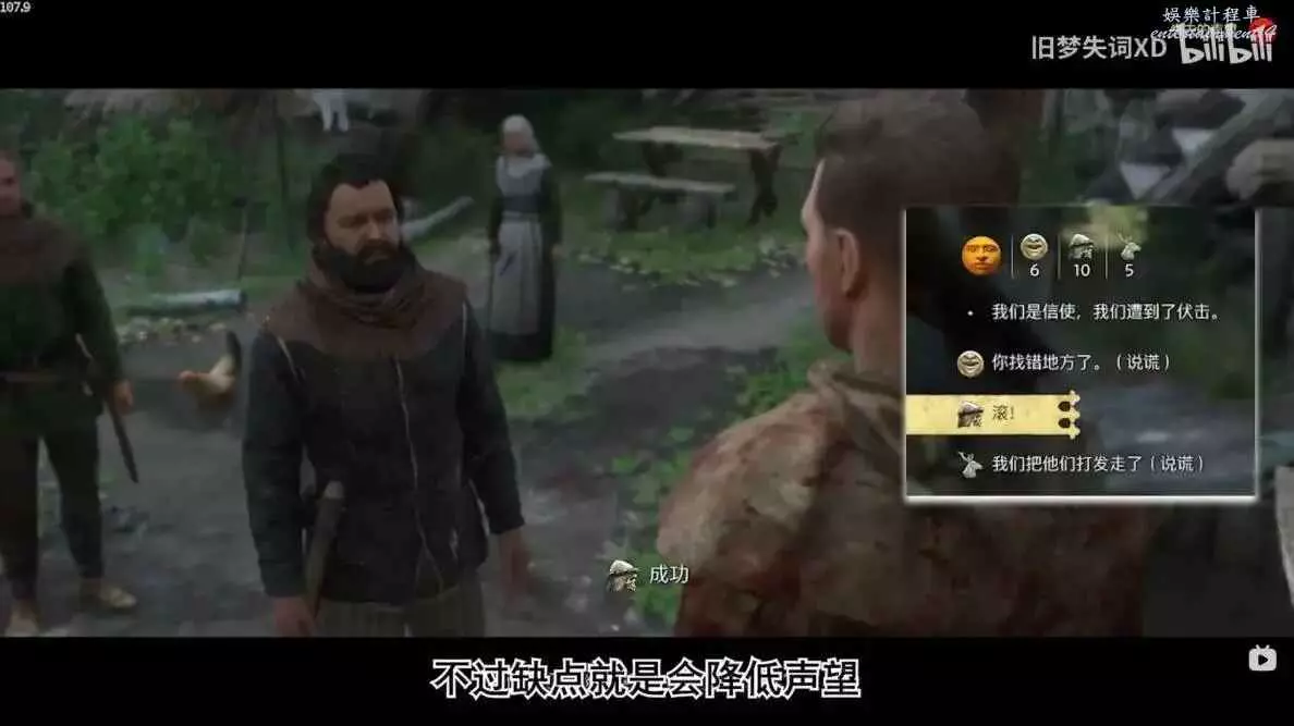 打發走強盜後,告訴老太太真相會獲得聲望,如果選擇隱瞞則會失去聲望。
