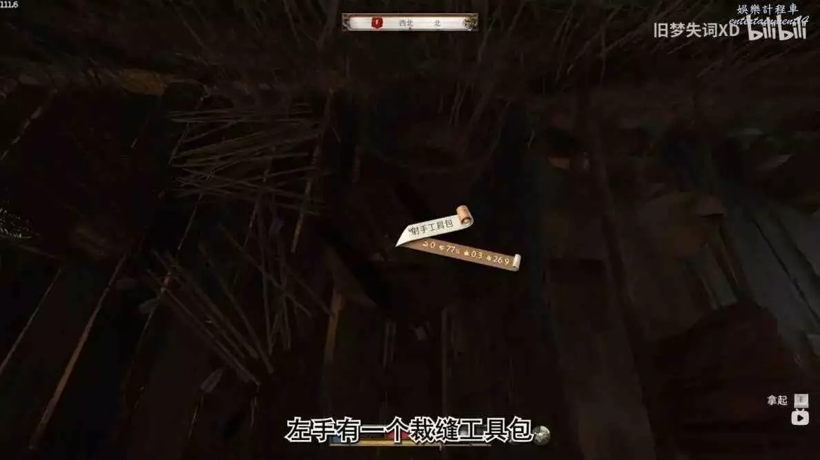 最後是新手屋除了擺在桌子上的保存藥劑和食物,臨別時的早餐,以及屍體旁的獵刀以外,在二樓上樓右手邊還有一個射手工具包、左手有一個裁縫工具包。