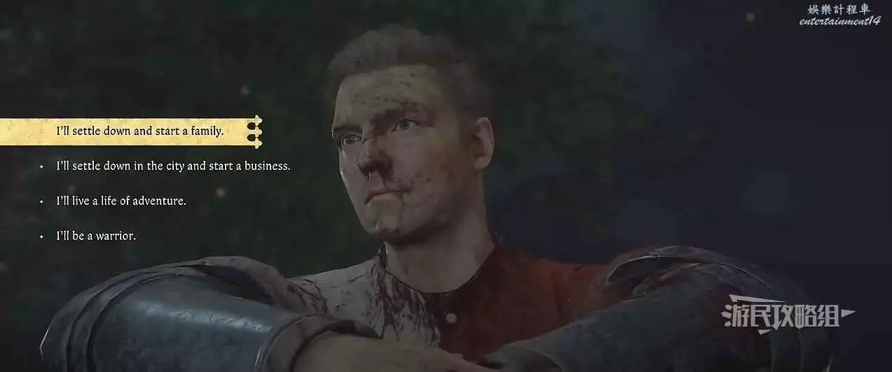 ②不要做太多壞事(如殺平民、搶劫和偷竊),將聲譽保持在較高的數值。儘量讓劇情關鍵城鎮/人物都存活(例如塞米、馬列索夫等),或者不要直接殺死某些角色(例如布拉班特、馮·奧利茨等),這樣在結局過場動畫期間才能讓父母感到自豪,否則後續的選項不會觸發,亨利父母會直接離開。之後在與父母對話的過程中為自己的錯誤懺悔,然後選擇返回故鄉定居成家,最後與特麗莎在一起。