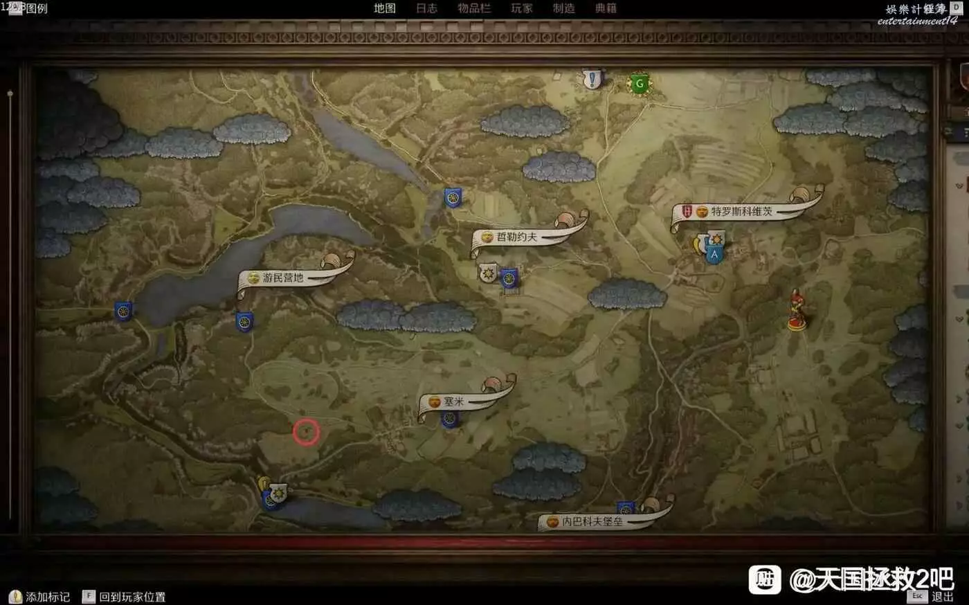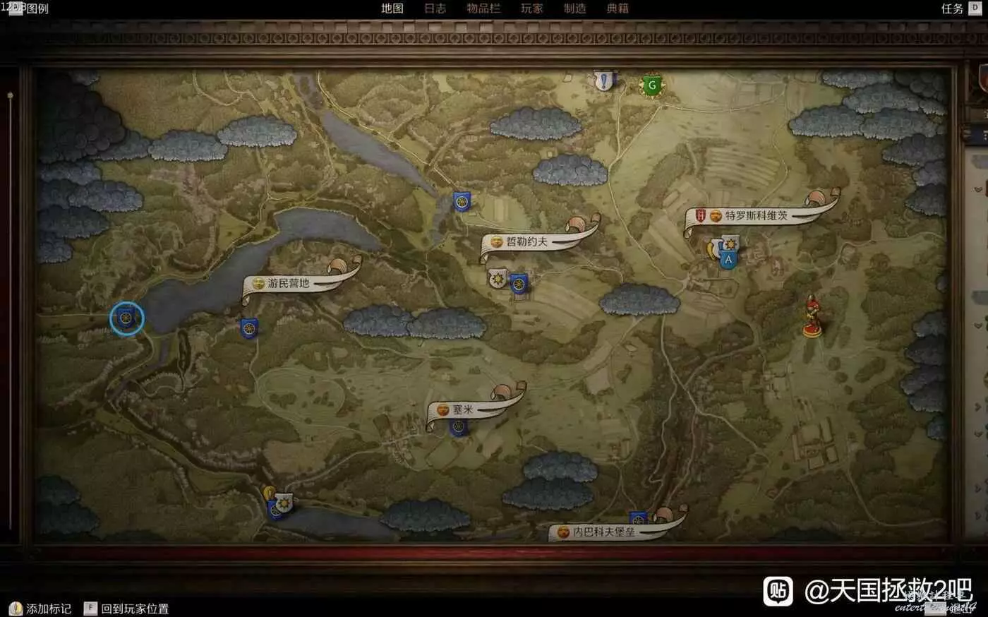 失敗的時候,你會發現鐵匠鋪那邊,自己住的小屋進不去了,打不開門了,這條線就斷了,我的就是這樣。當你像我一樣壞線了,不知道去哪裡睡的時候,或者覺得其他地方都太麻煩的時候,就首選藍圈標的營地處。