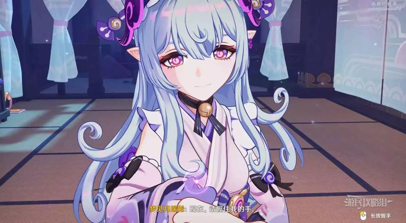 長按光點位置牽手,然後繼續觸發劇情。如果長時間不握手還能觸發額外對話。