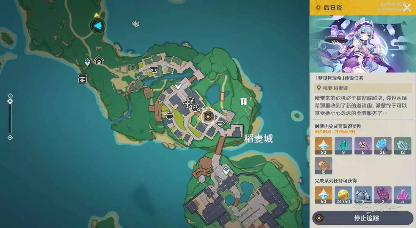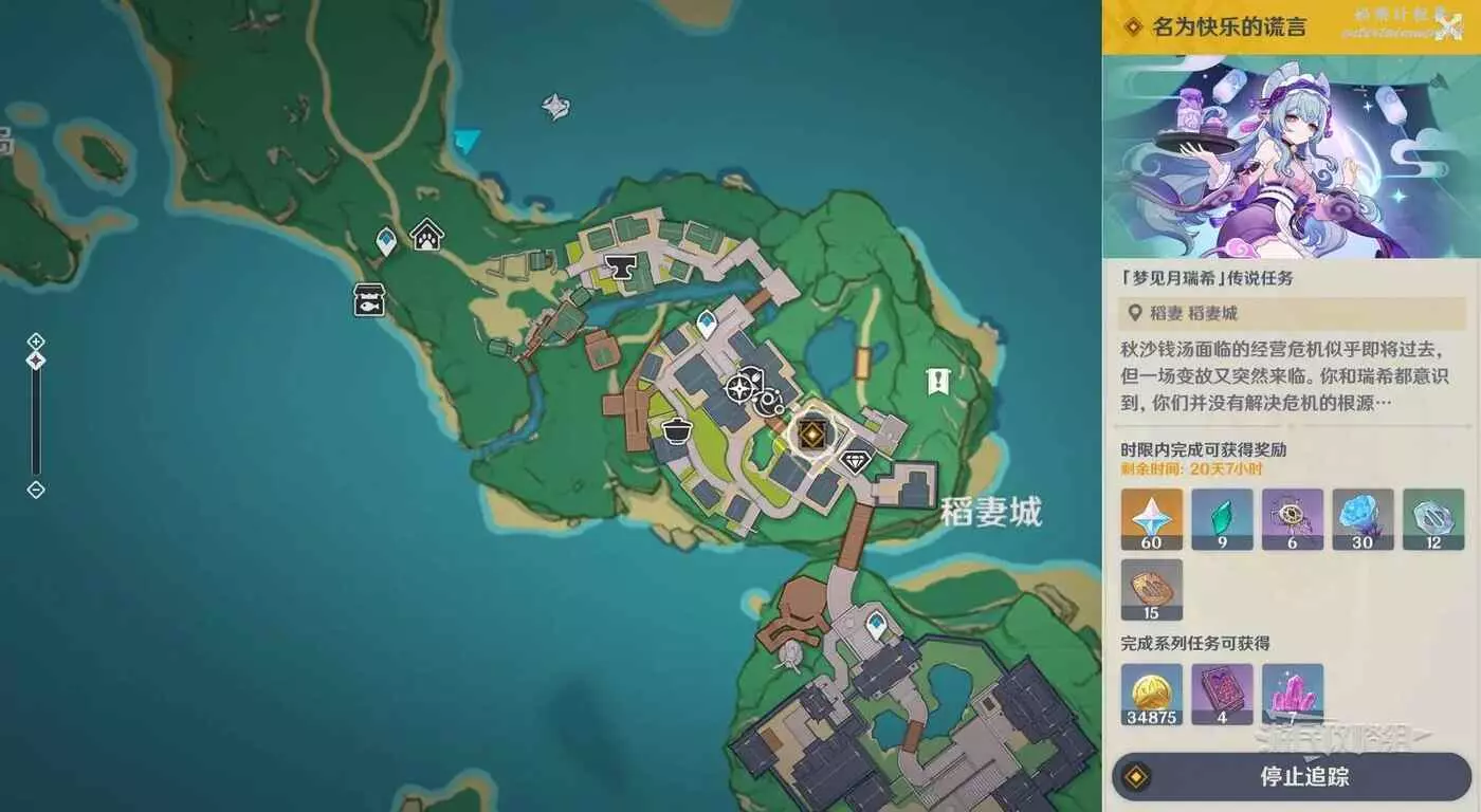 任務解鎖後,會觸發派蒙的劇情對話,之後跟隨任務指引前往稻妻白狐之野,觸發對話。